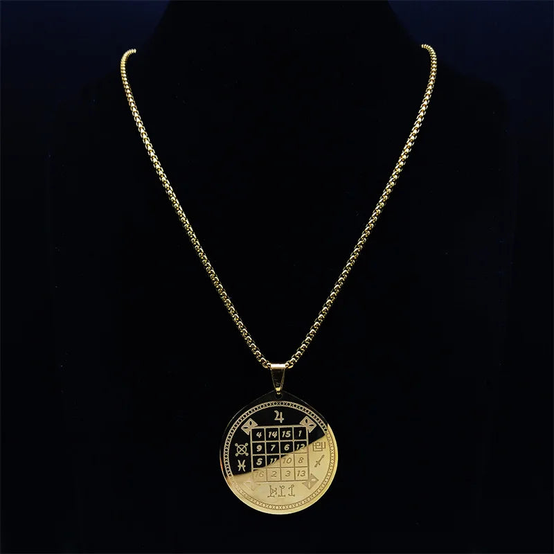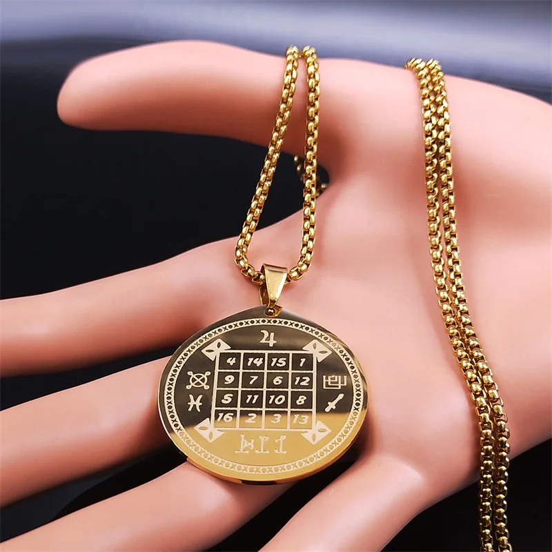 Collar de cadena larga de acero inoxidable con brujería y adivinación digital para hombre y mujer.