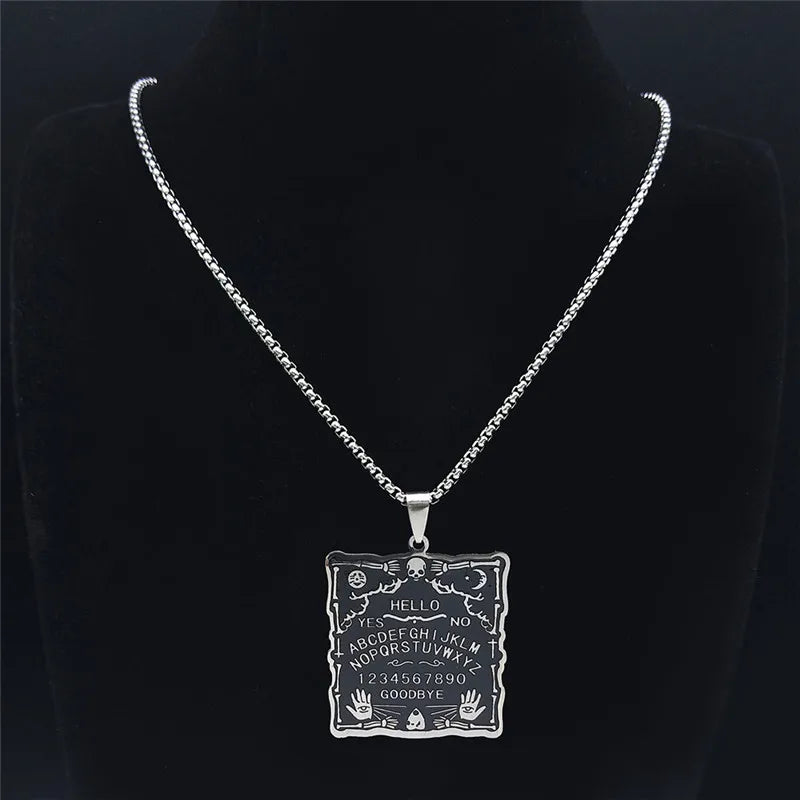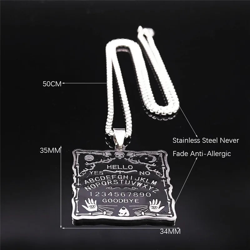Recién llegado, collar de tablero Ouija de Color plateado, joyería, collares de acero inoxidable