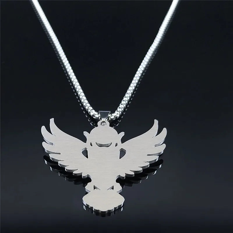 Estilo: Collar de cadena de acero inoxidable con águilas y punta de lanza de búho de brujería