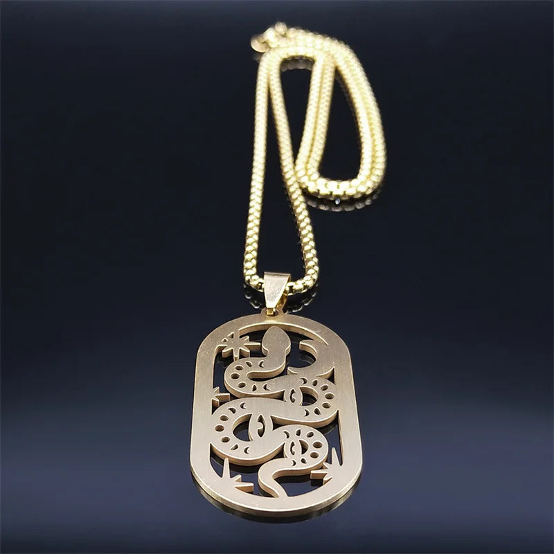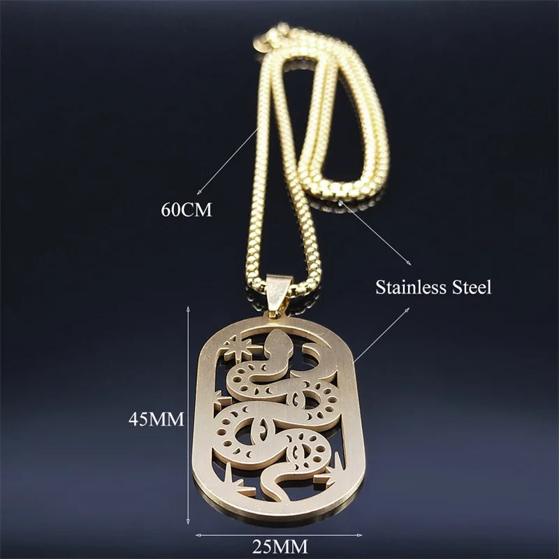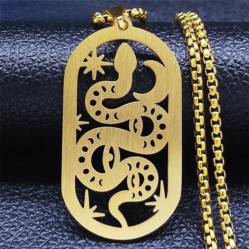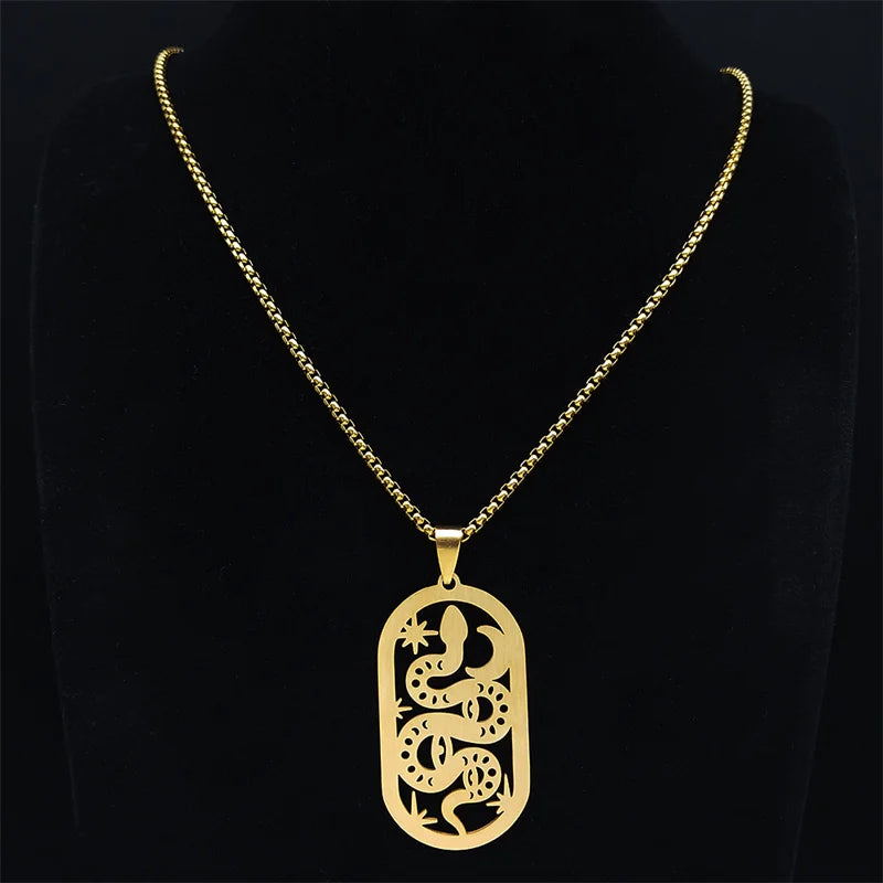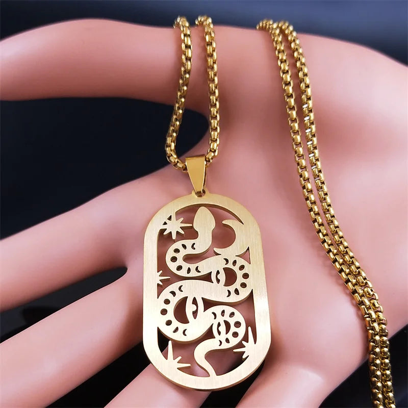 Collar de acero inoxidable con diseño de serpiente, luna y estrella, para brujería, para mujer y hombre, cadena pagana de bruja, joyería, collar de acero inoxidable