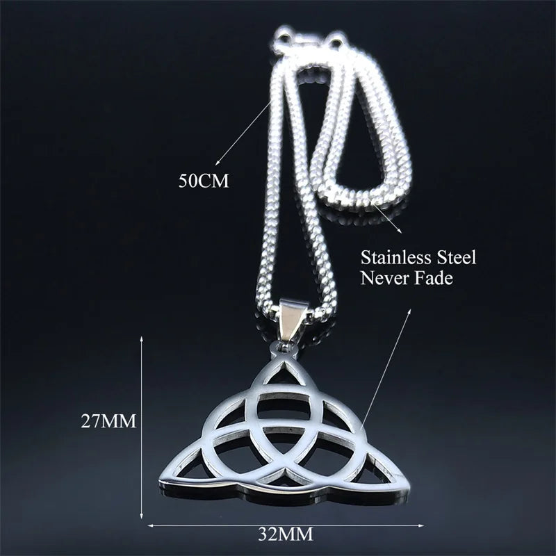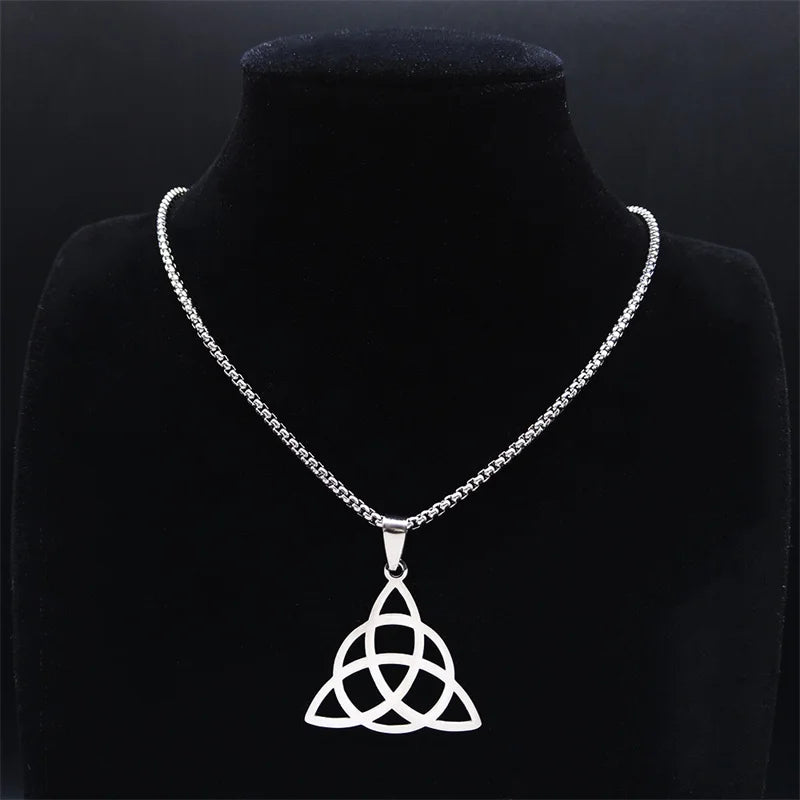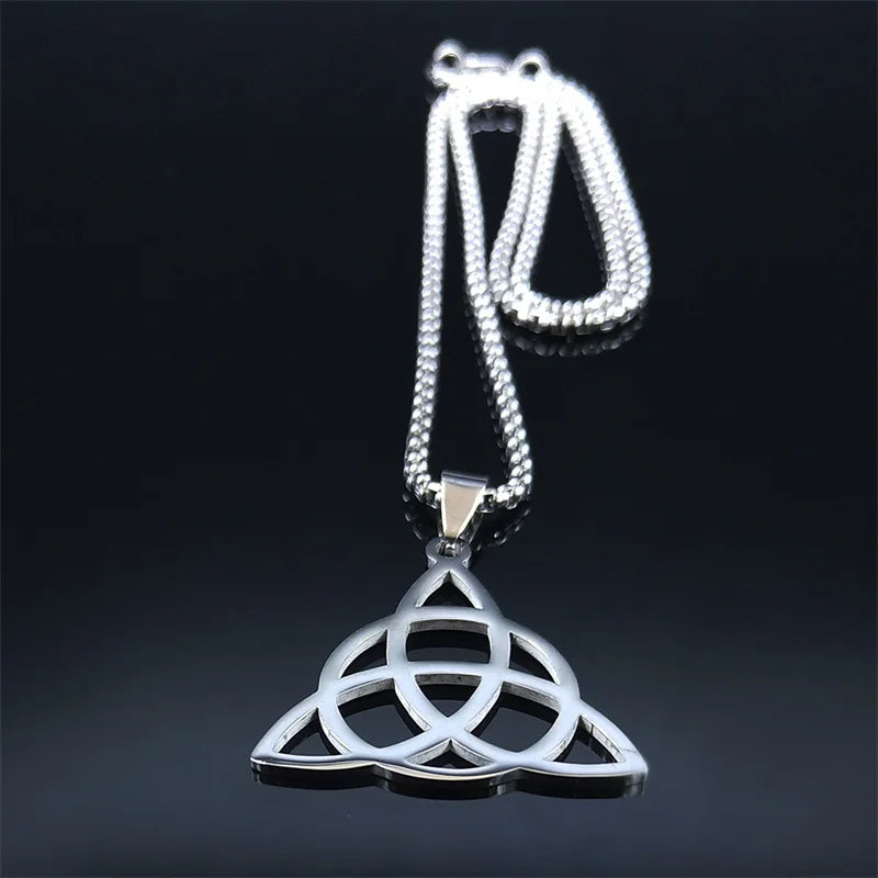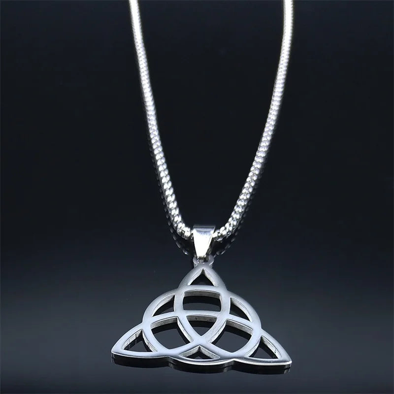 Collar de cadena con nudo irlandés de bruja de acero inoxidable para hombre y mujer, con geometría.