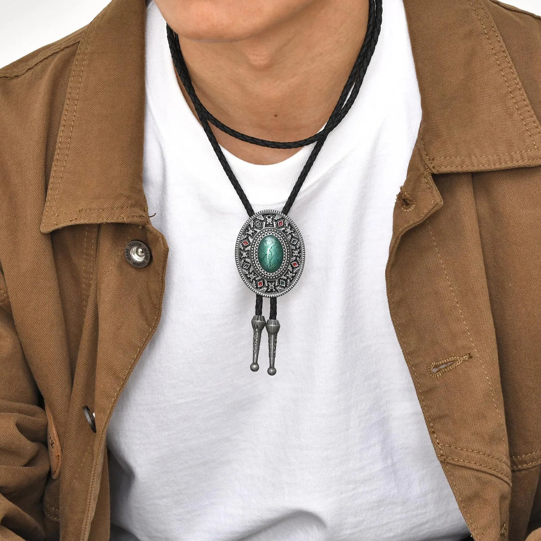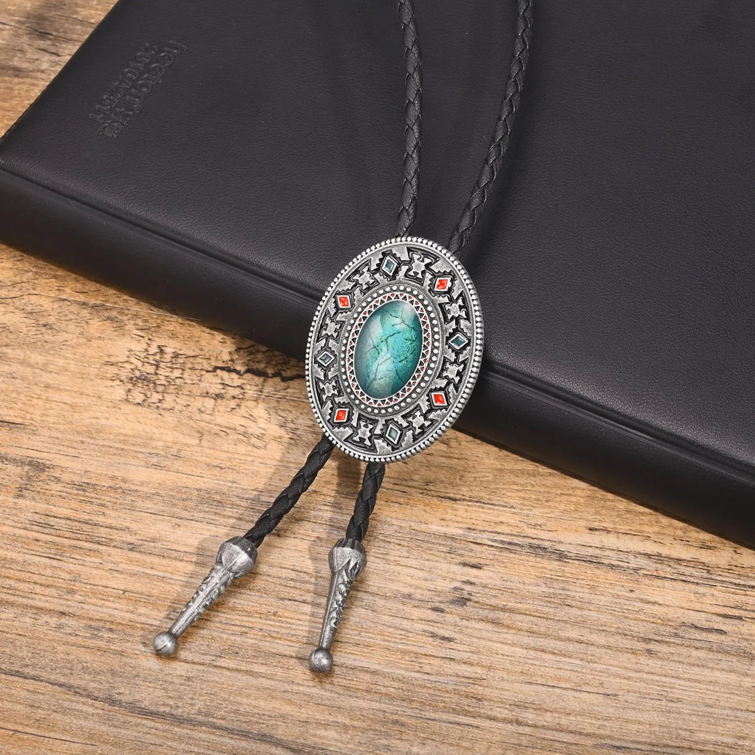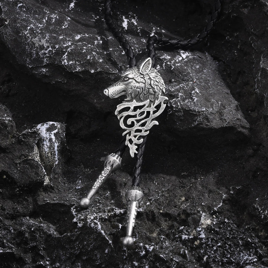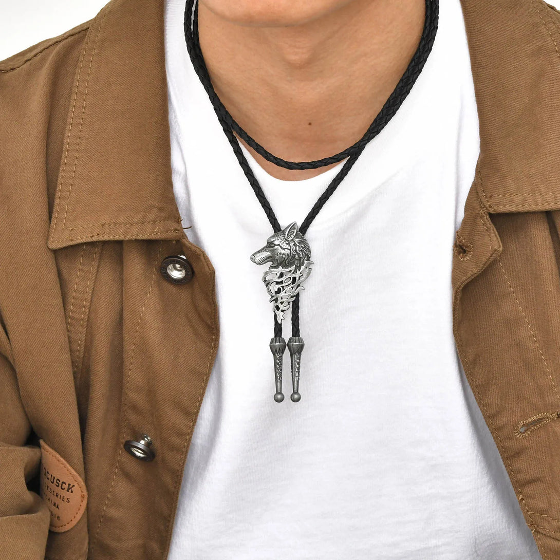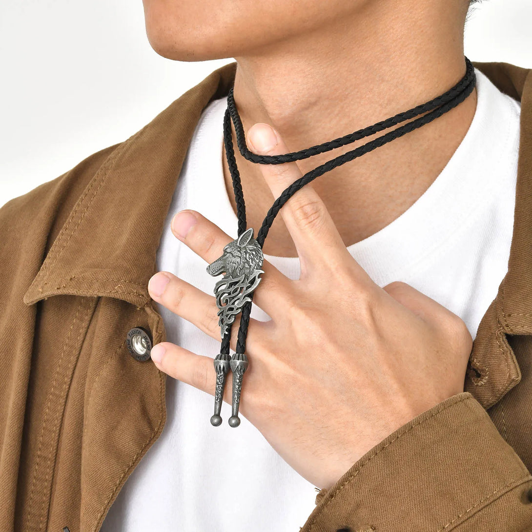 Collar con colgante de cabeza de lobo para hombres y niños, corbata de polo de cuerda de cuero, estilo western, bisutería.