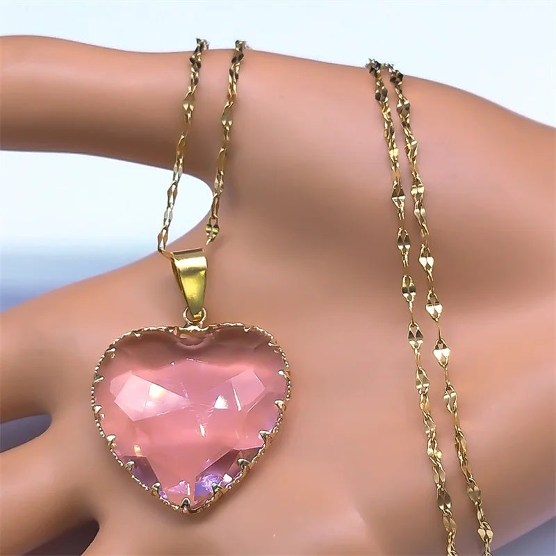 Collar de corazón rosa Y2k Harajuku para mujer y niña, cadena de acero inoxidable a la moda, regalo de fiesta para mujer, joyería