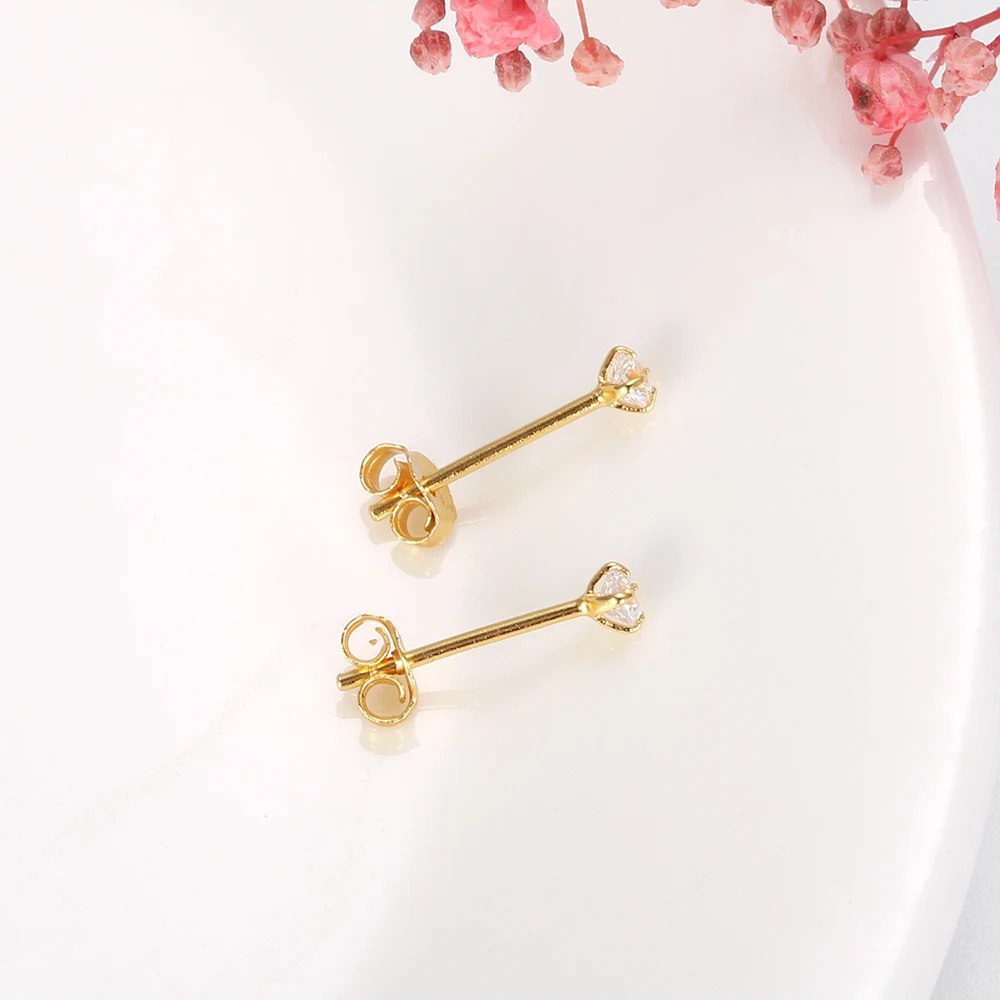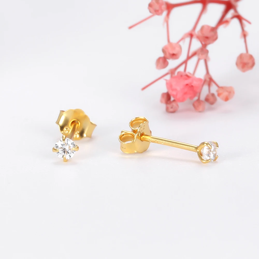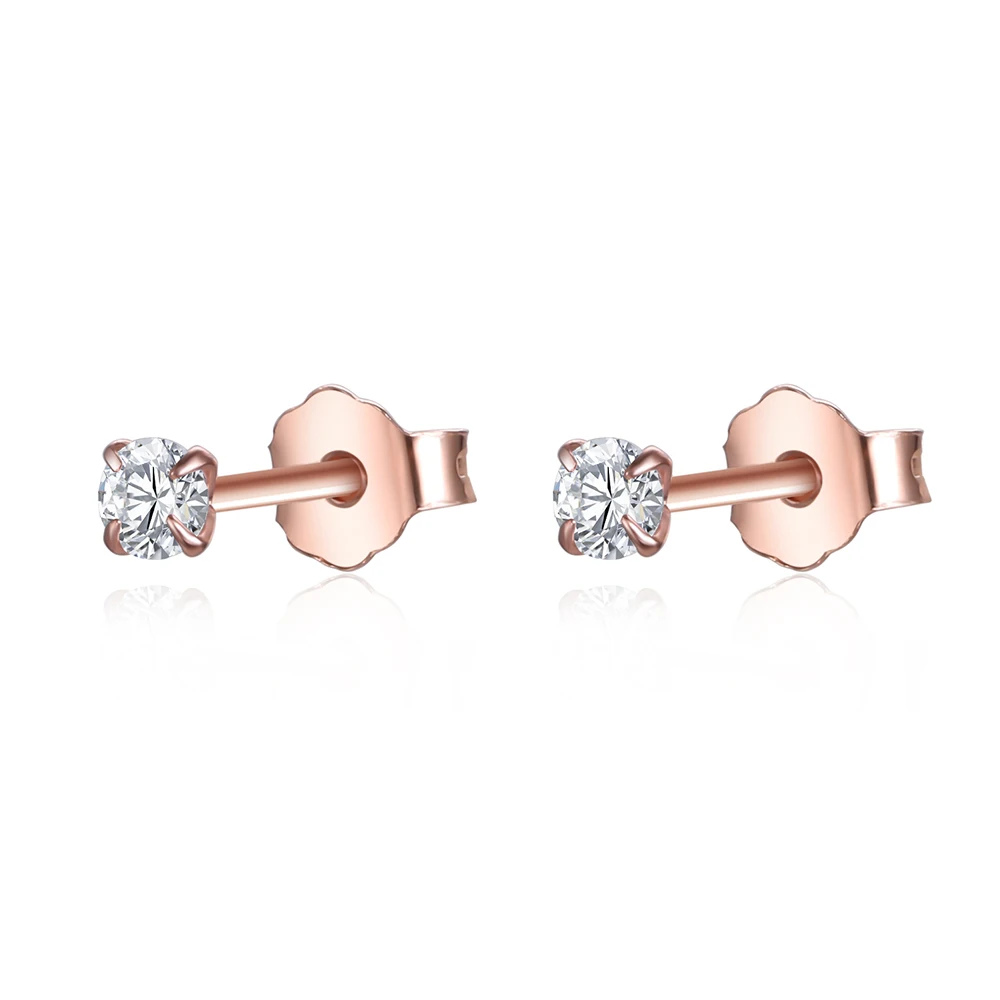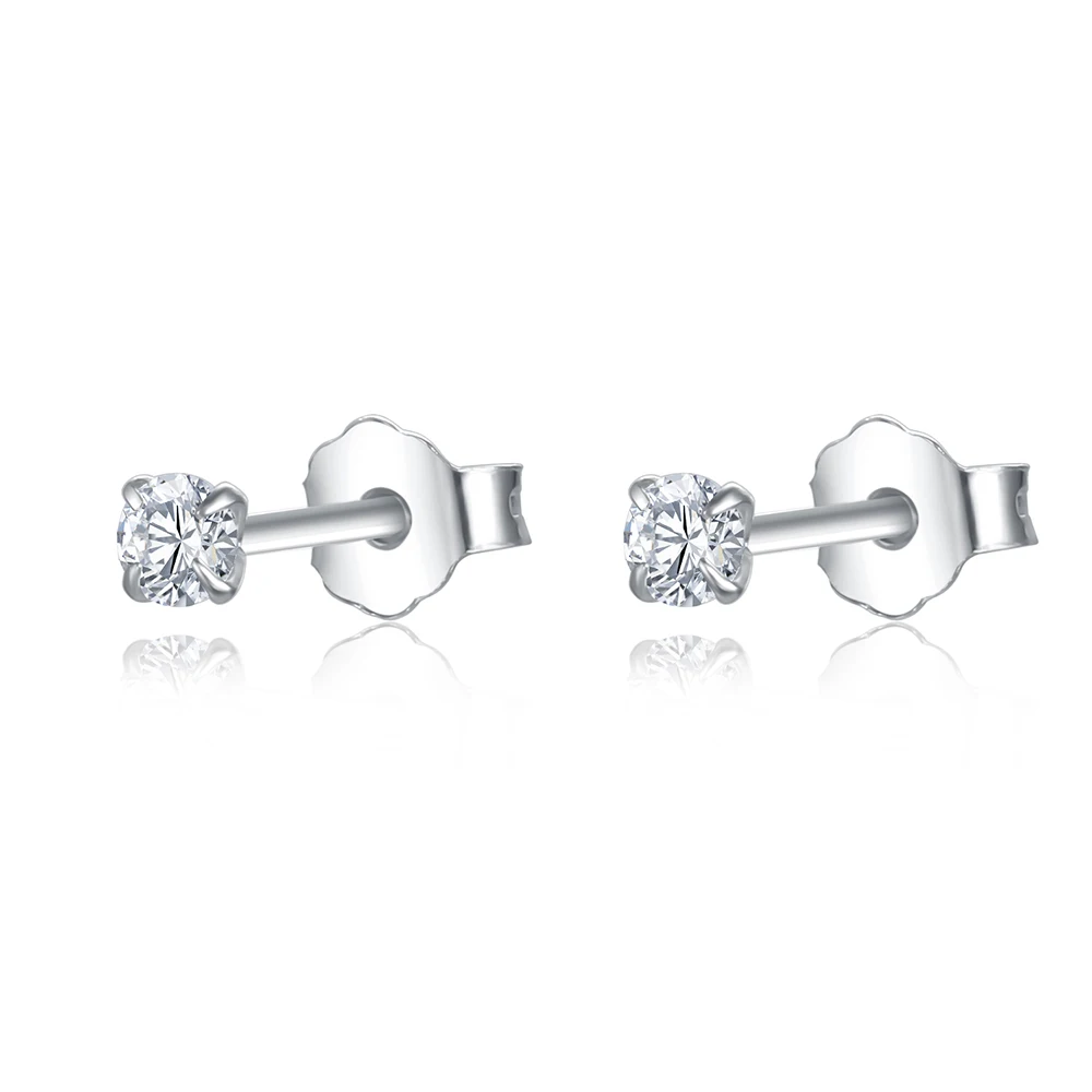 Stud Earrings-100% Real Sterling Silver 925 Fashion Stud Earrings Small Single Diamond Stud European Wedding Engagement Jewelry Gift for Women