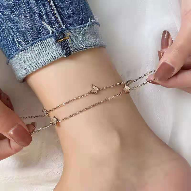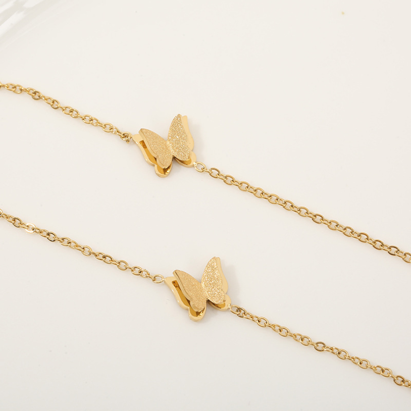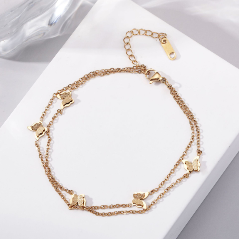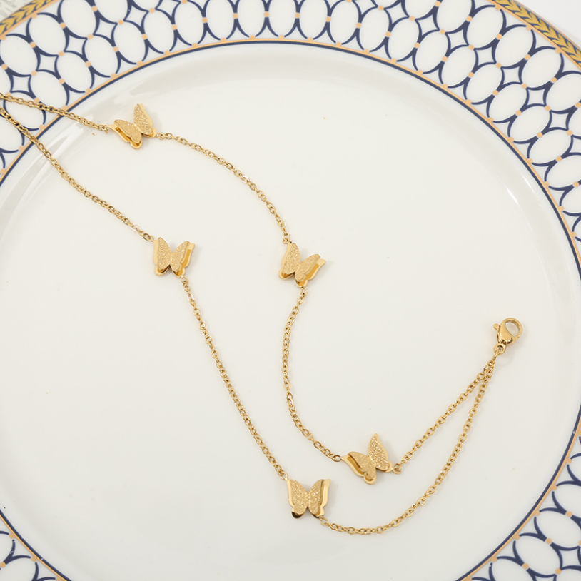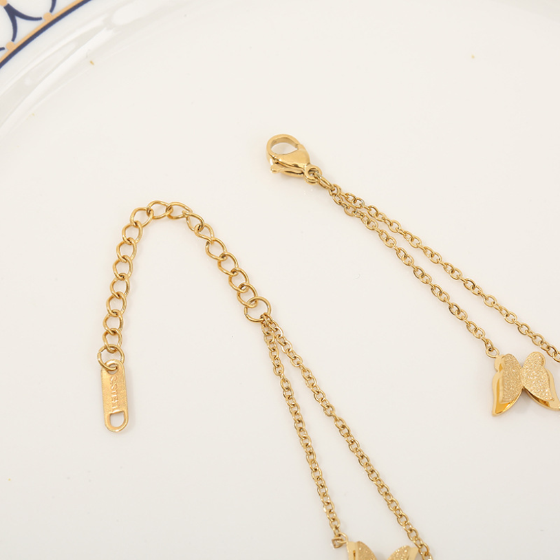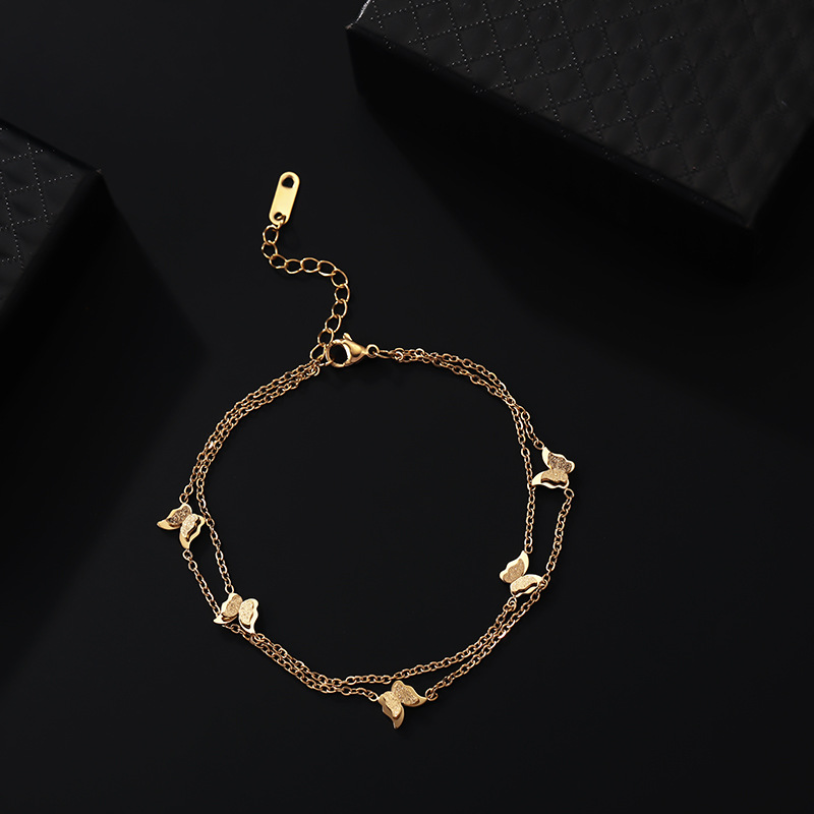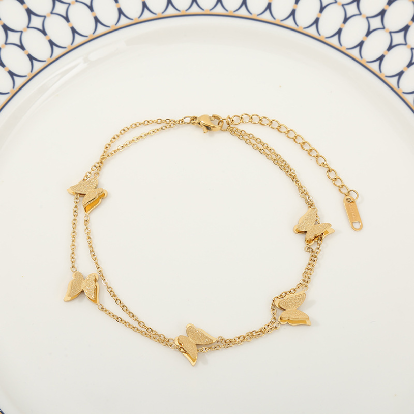 Anklets- 316L Stainless Steel New Fashion High-end Jewelry Lifelike 2 Layer Matte 5 Butterfly Gold Color Charm Chain Anklet For Women