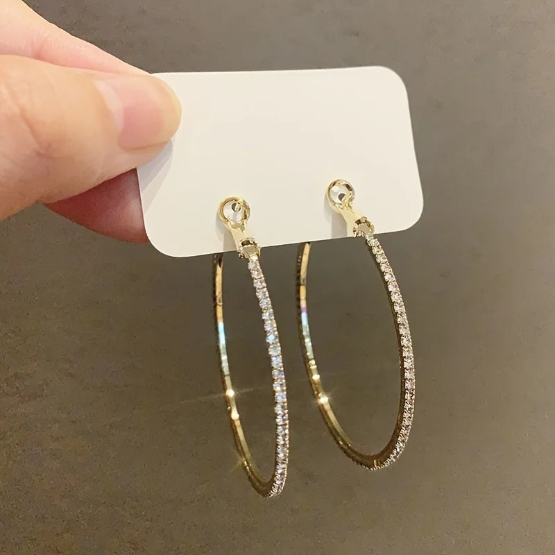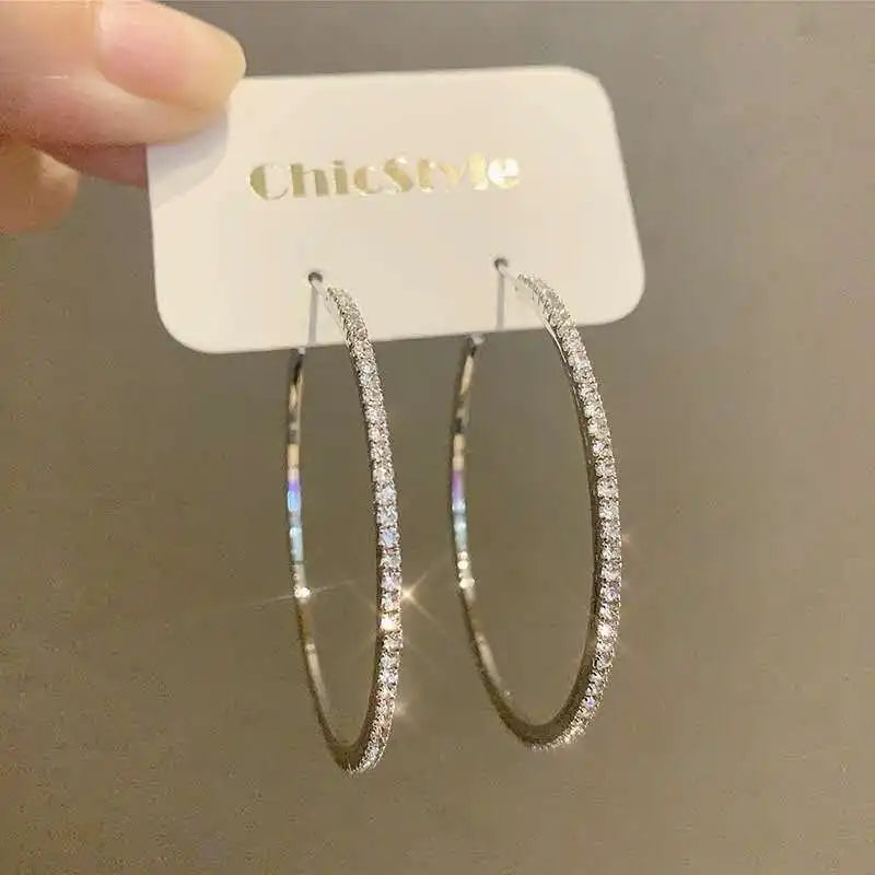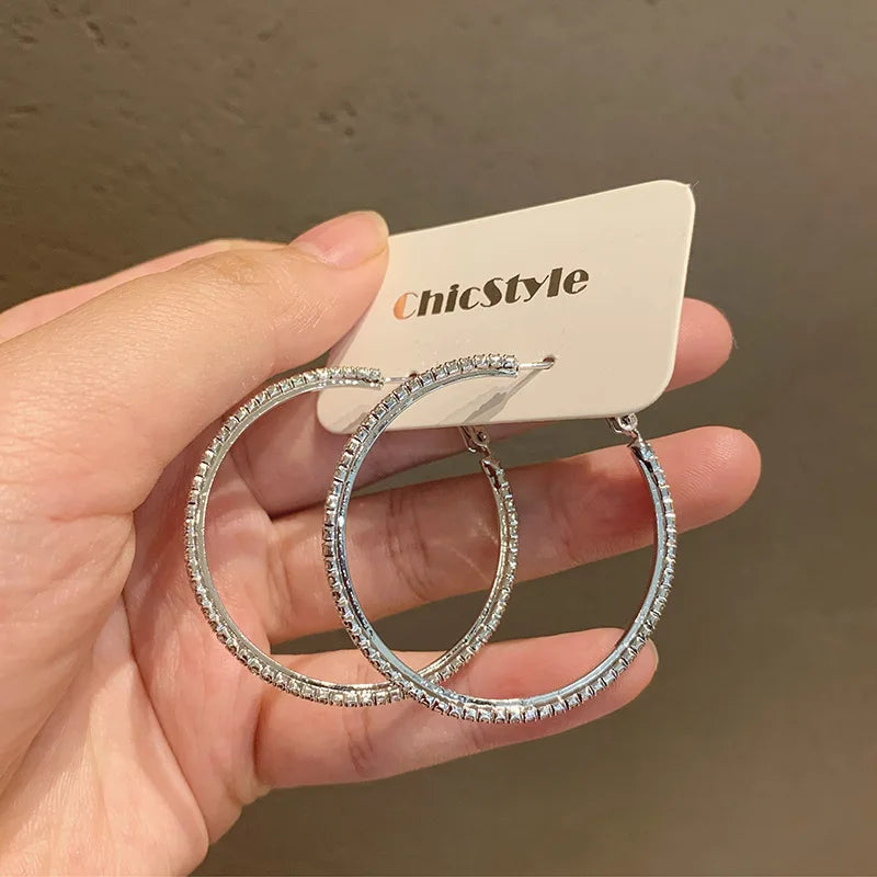 2 Pairs Set With Diamonds Exaggerate Elegant Big Circle Earrings Versatile Eor Girl Parties Fashion Accessories