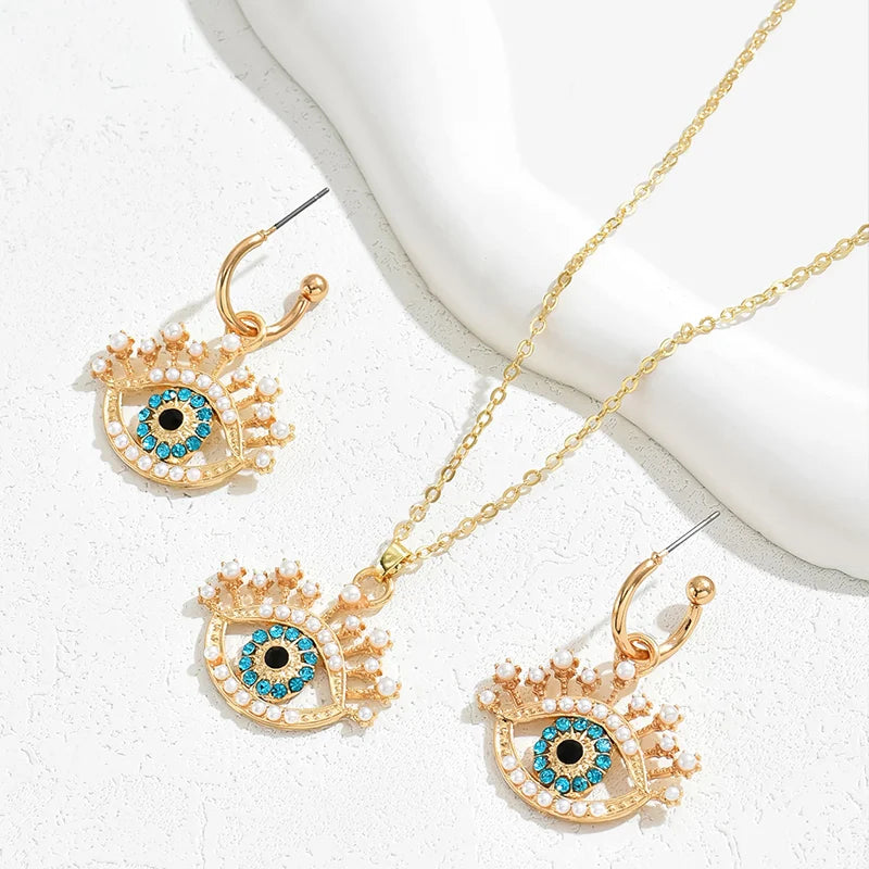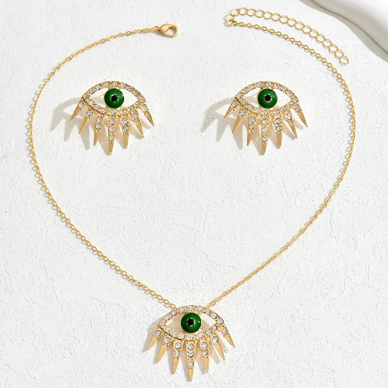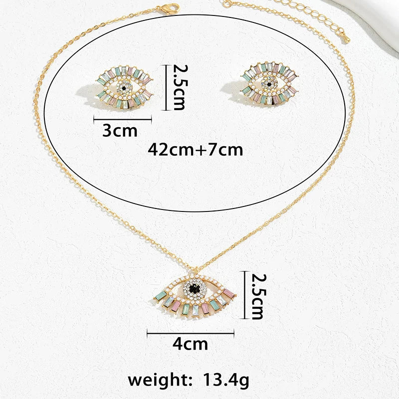 Name:2 PCS Set Multi Color Crystal Evil Eye Necklace Earrings