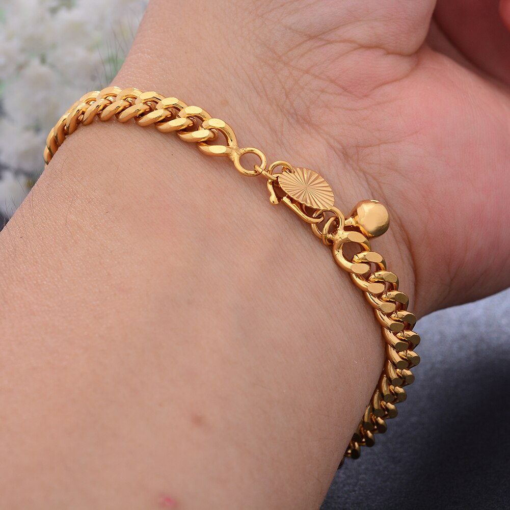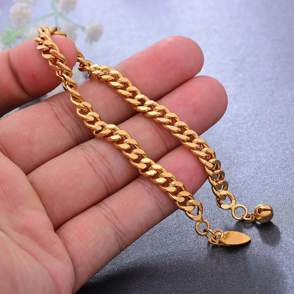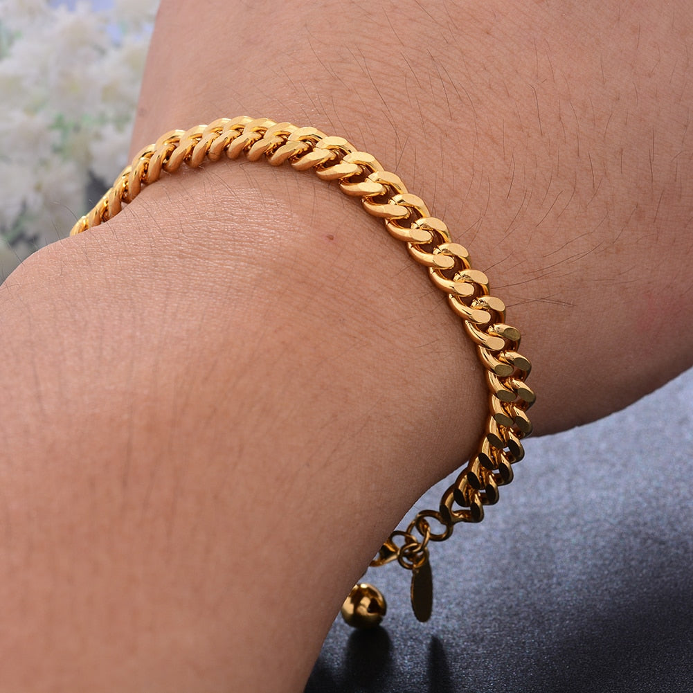 Afraic Jewelry- 20CM Trendy Chain Gold Colour Bracelet For Men/Women Curb Cuban Davieslee Lover Jewelry