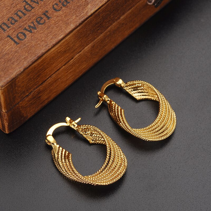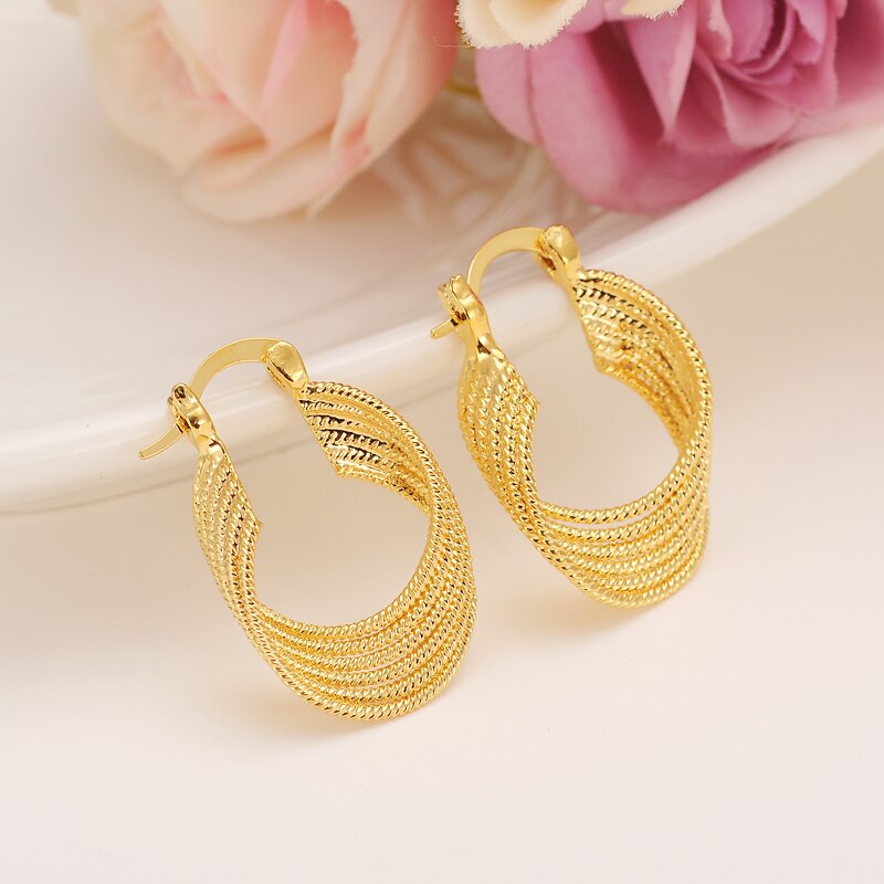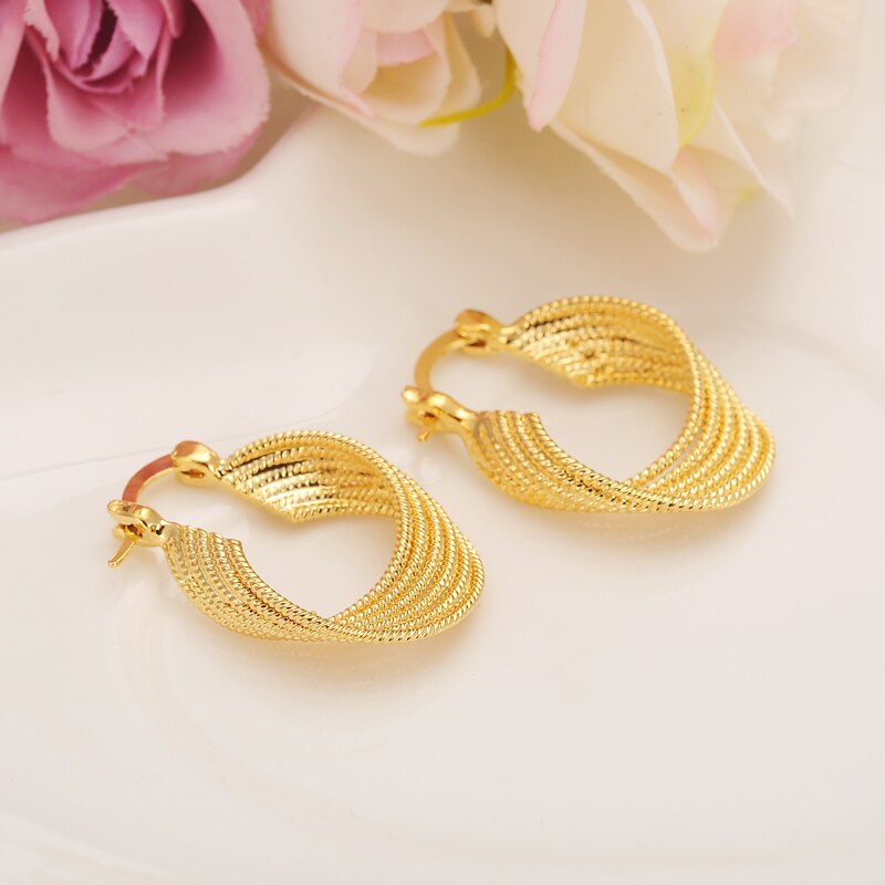 24k 1 pairs African Earrings for Women Gold hoop Earrings Girl Ethiopian Jewelry Gift