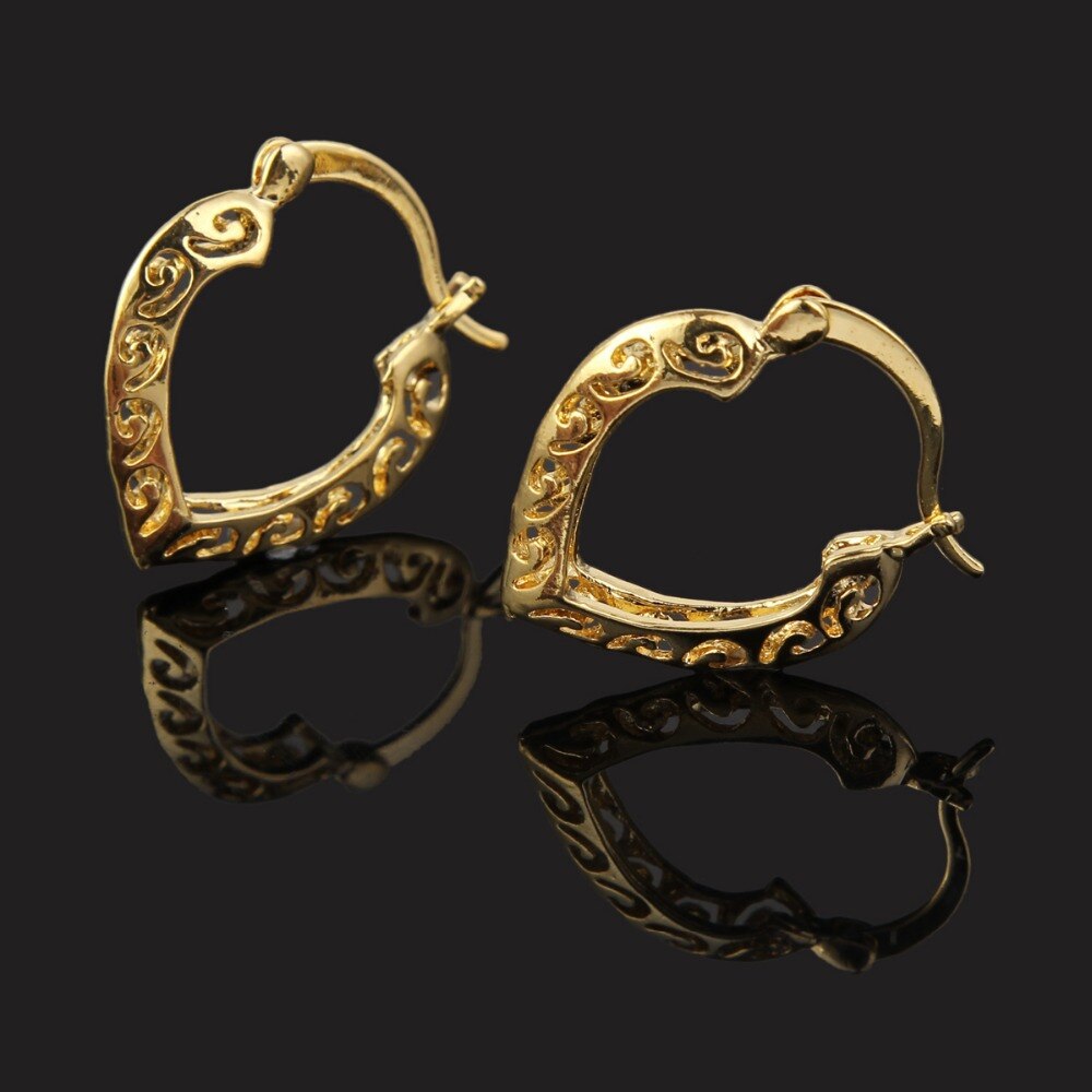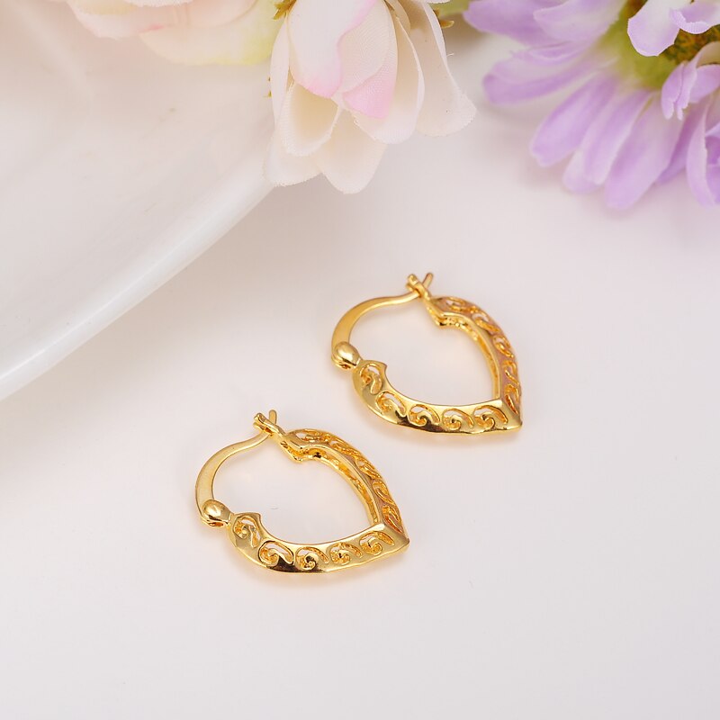 Afraic Jewelry-24k 1pairs Women Lady Elegant Earring 24k Gold Earrings Heart Gift 2022 New Design