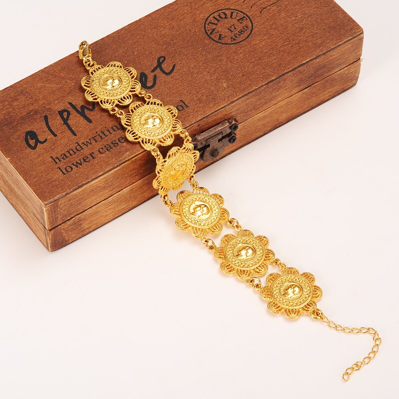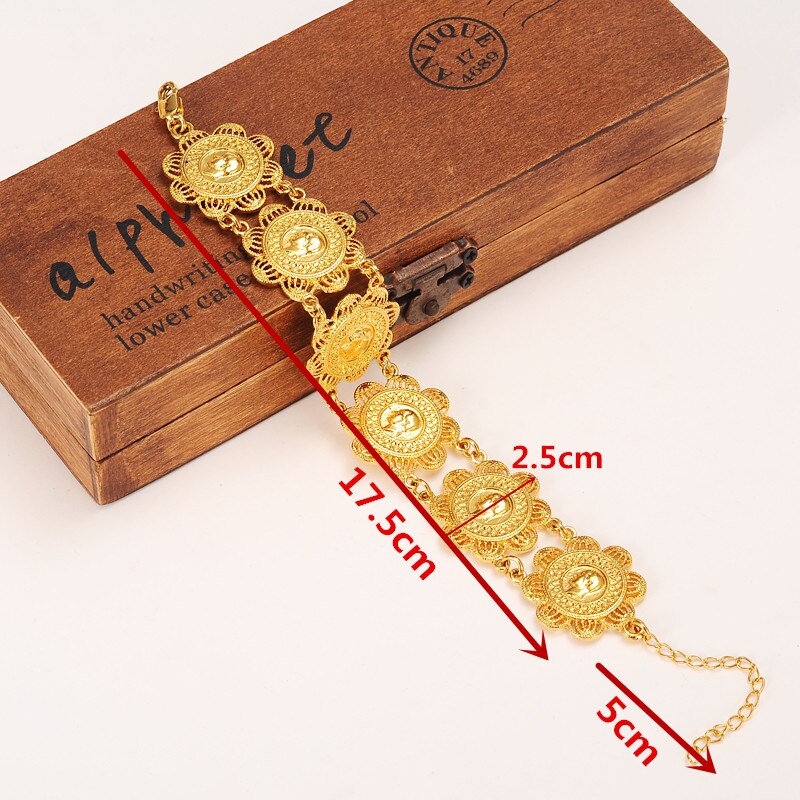 24k 17.5cm+5.5cm Money Coin Bracelet Gold Islamic Muslim Arab Coins Bracelet