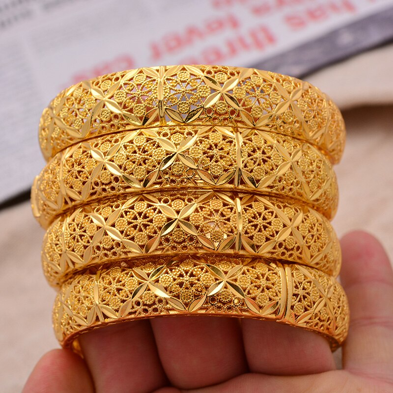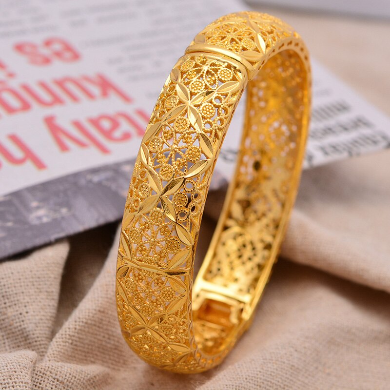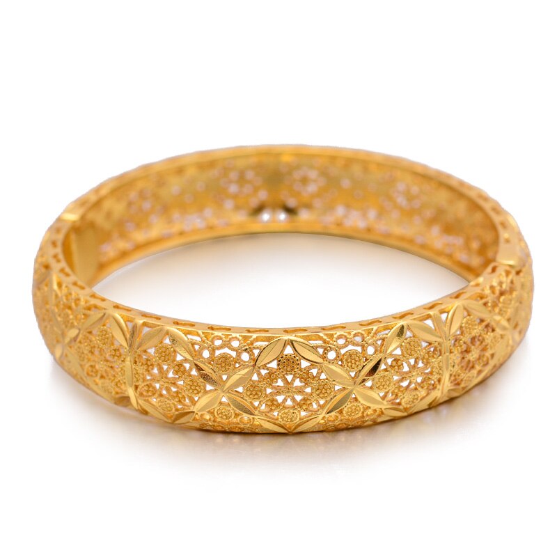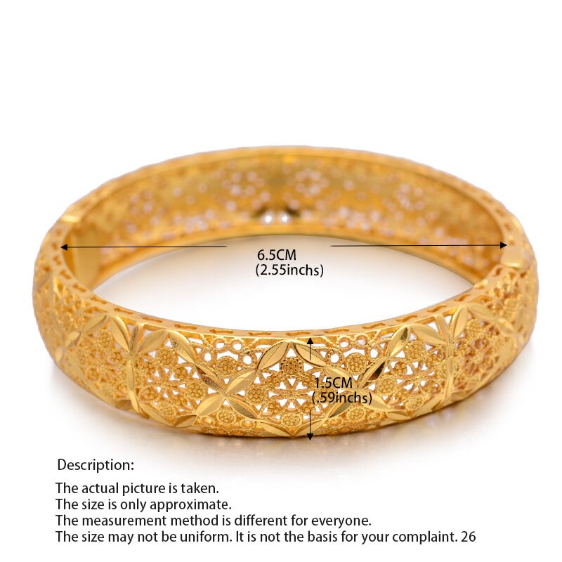 24K 1pcs Dubai Gold Color Bracelets For Women Middle East Arab Dubai Bangles