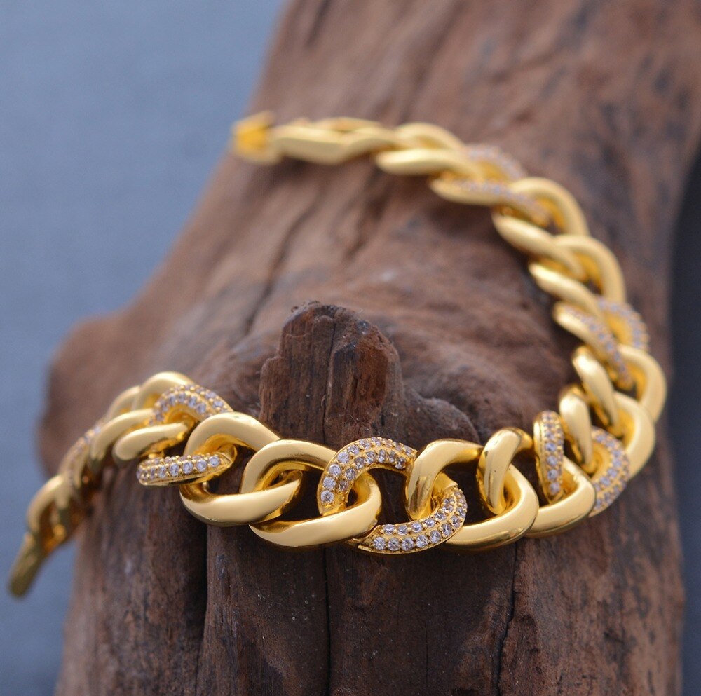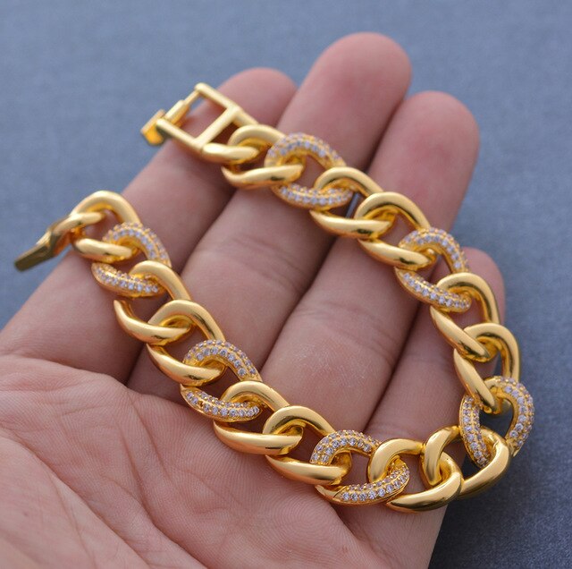 Afraic Jewelry- 24K 20cm / Width Zircon Bracelet for Women/Men Gold Color & Copper Ethiopian Jewelry African Bangle Arab Wedding Gifts