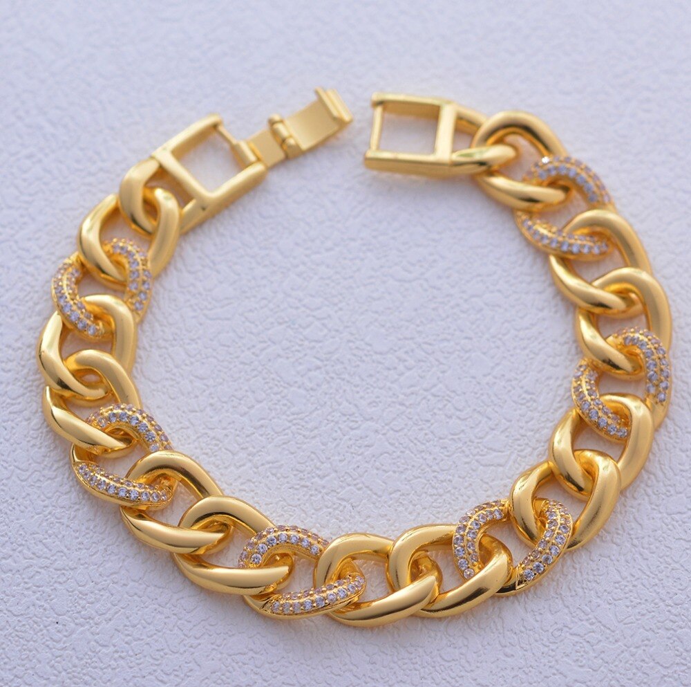 24K 20cm / Width Zircon Bracelet for Women Ethiopian Jewelry African Bangle