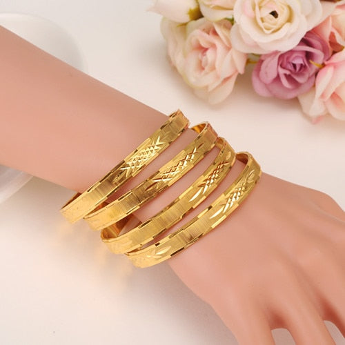 24k 4PCS Dubai Gold Jewelry Bangles For Ethiopian Bangles Bracelets Jewelry