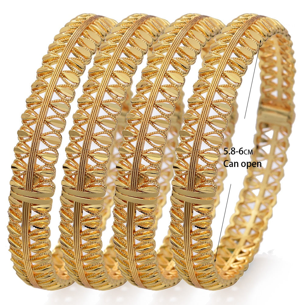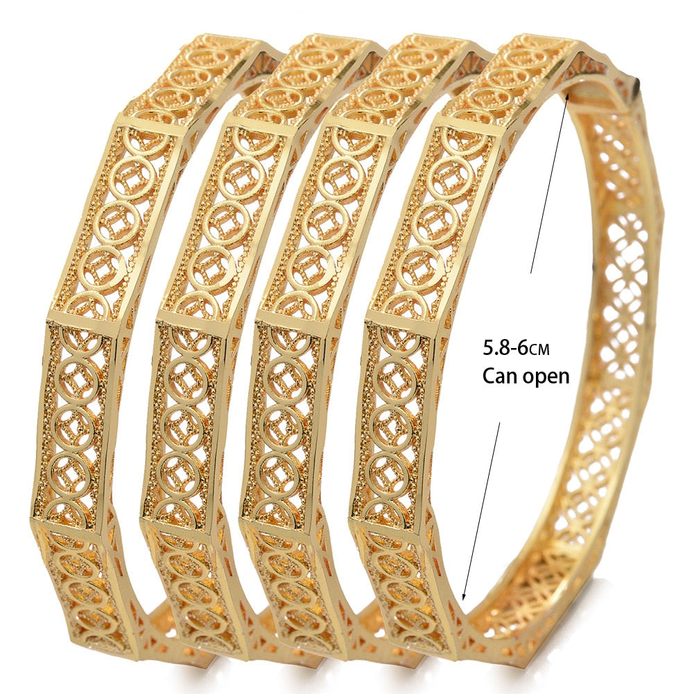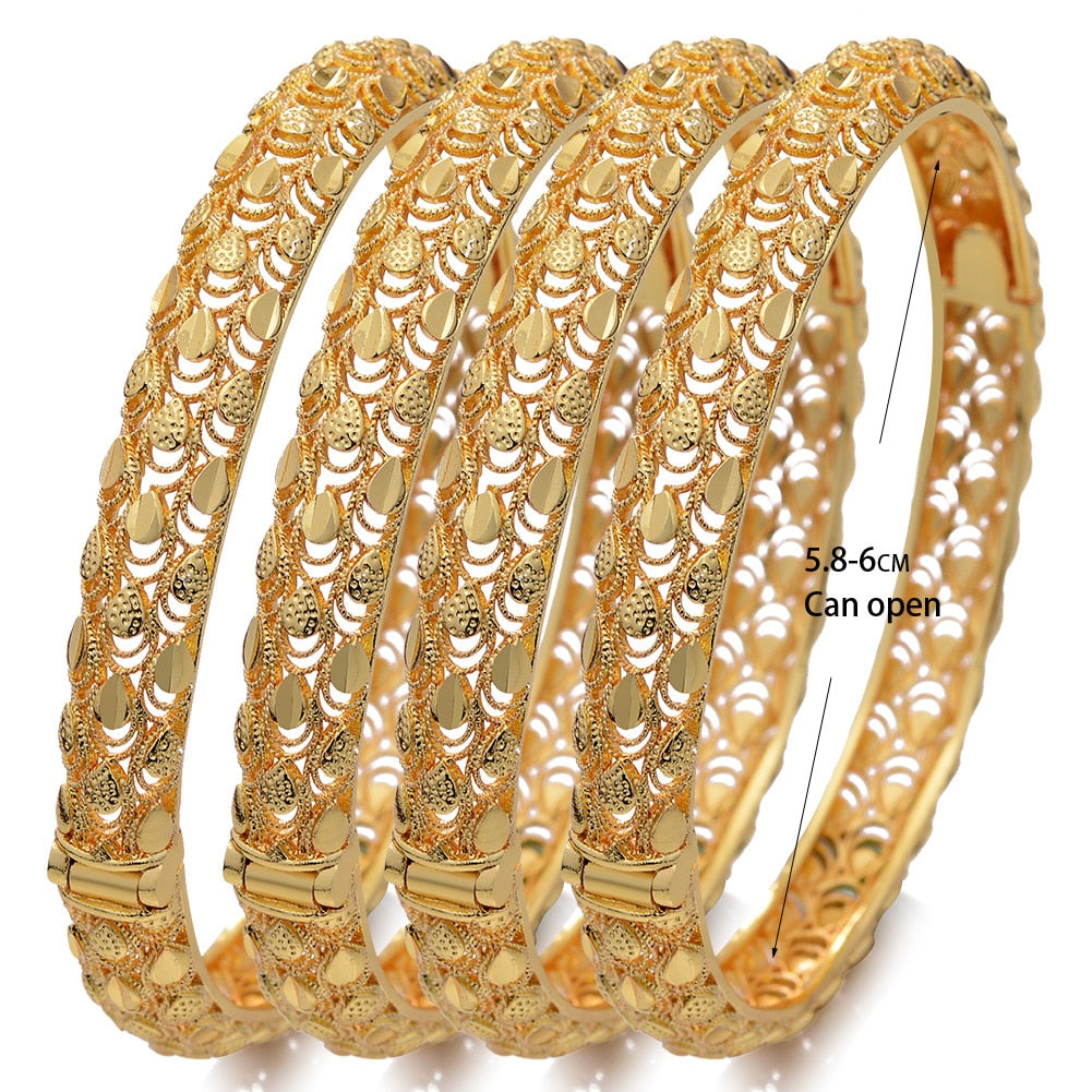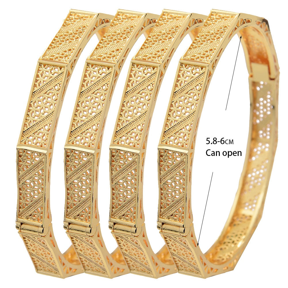 Afraic Jewelry- 24k 4pcs/Lot Gold Plated Bracelets Bangles Holiday Gifts Party Wedding Jewelry For Women Bridal