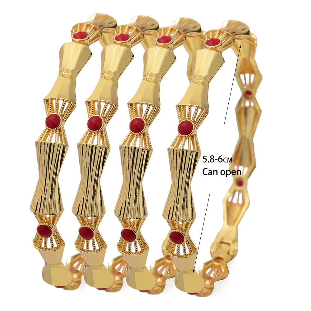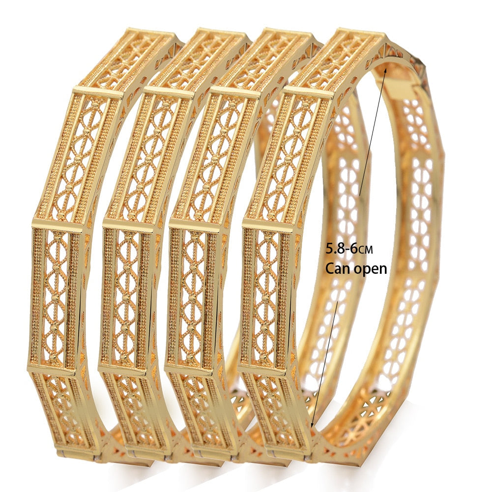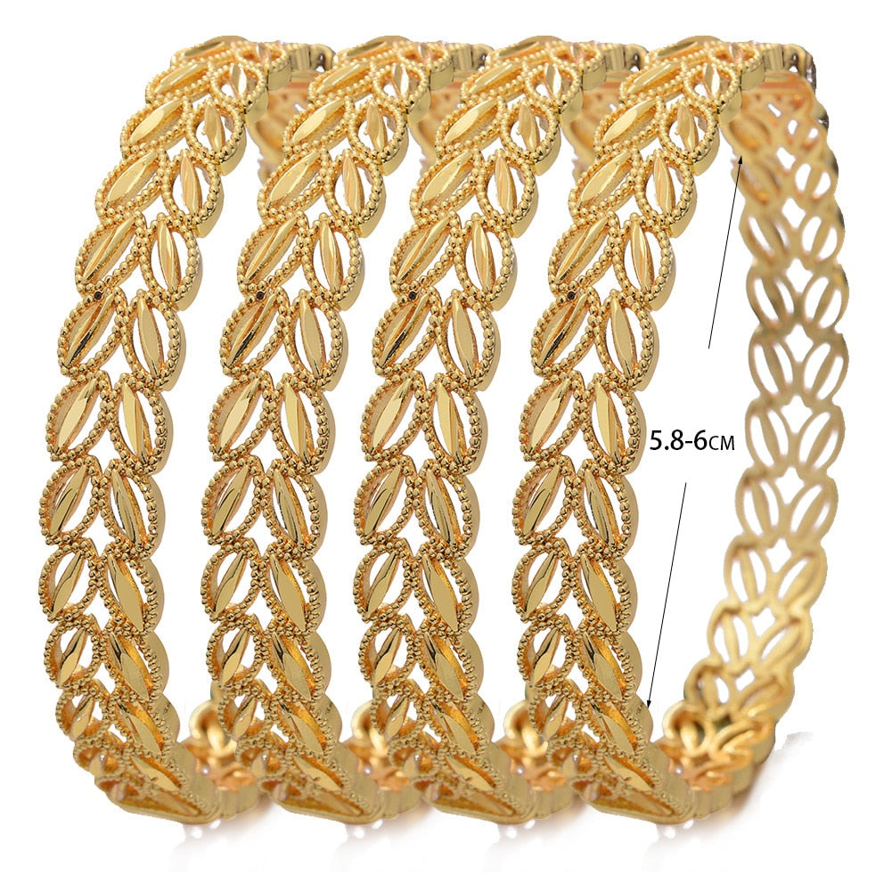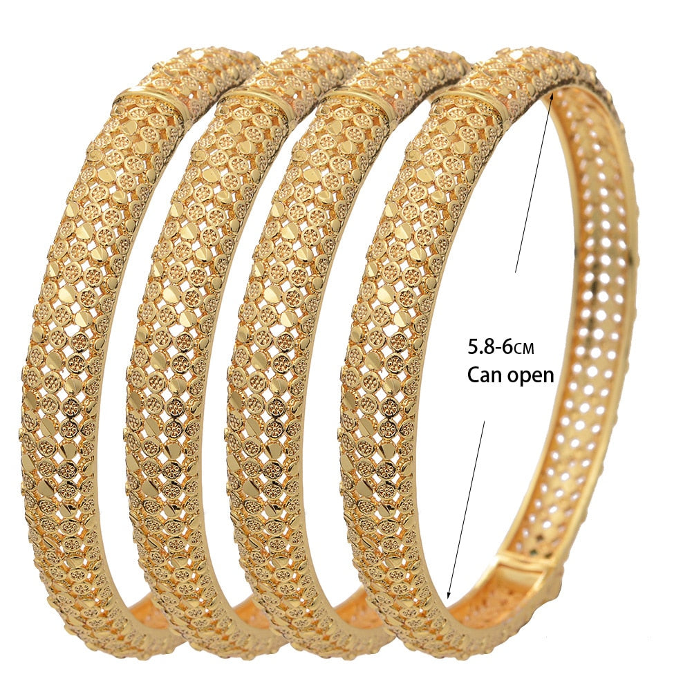 Afraic Jewelry- 24k 4pcs/Lot Gold Plated Bracelets Bangles Holiday Gifts Party Wedding Jewelry For Women Bridal