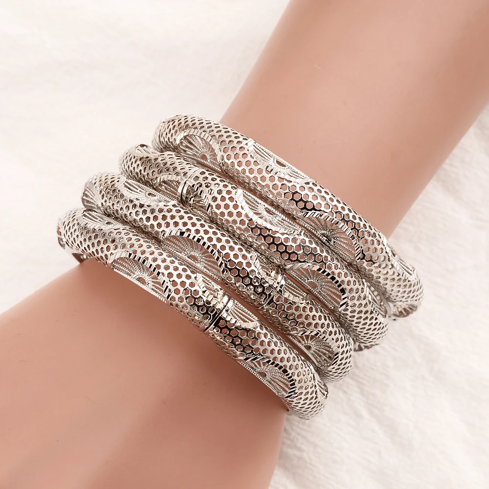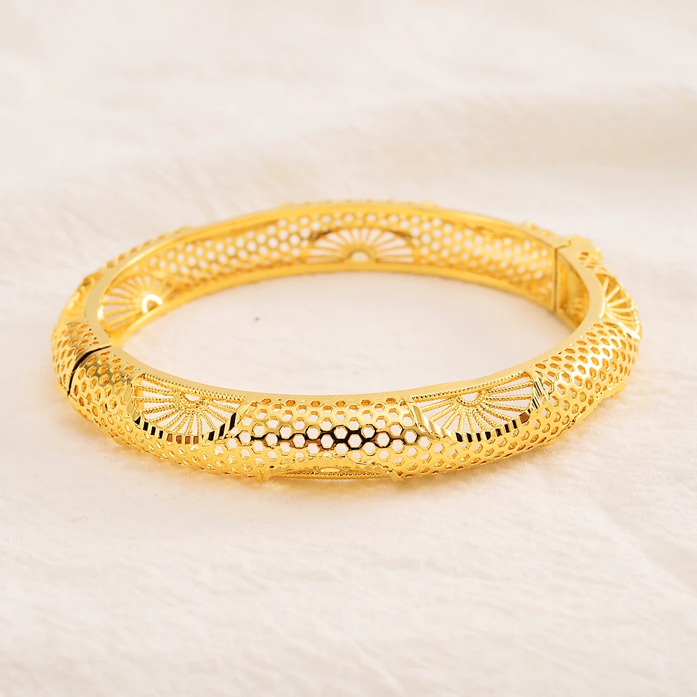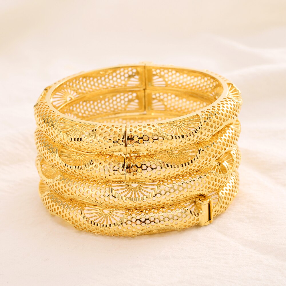 Afraic Jewelry-24K 4pcs/Set Dubai Gold Color African Bridal Wedding Openable Bangle For Women Saudi Arab Exquisite Pattern Bracelet&Bangles Jewelry
