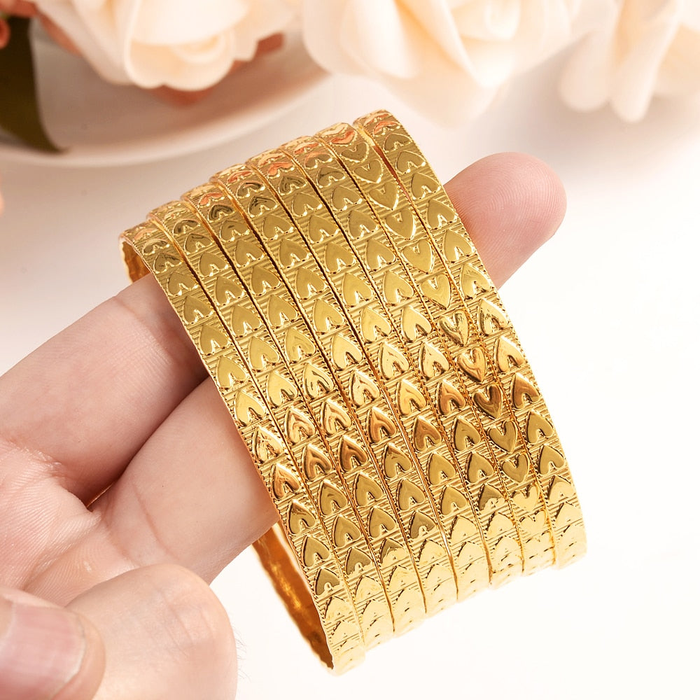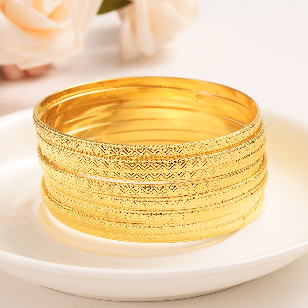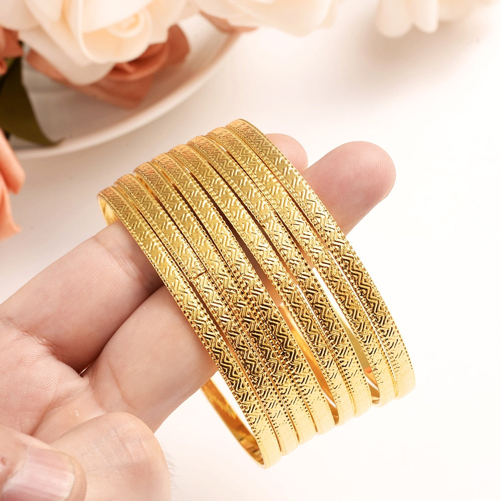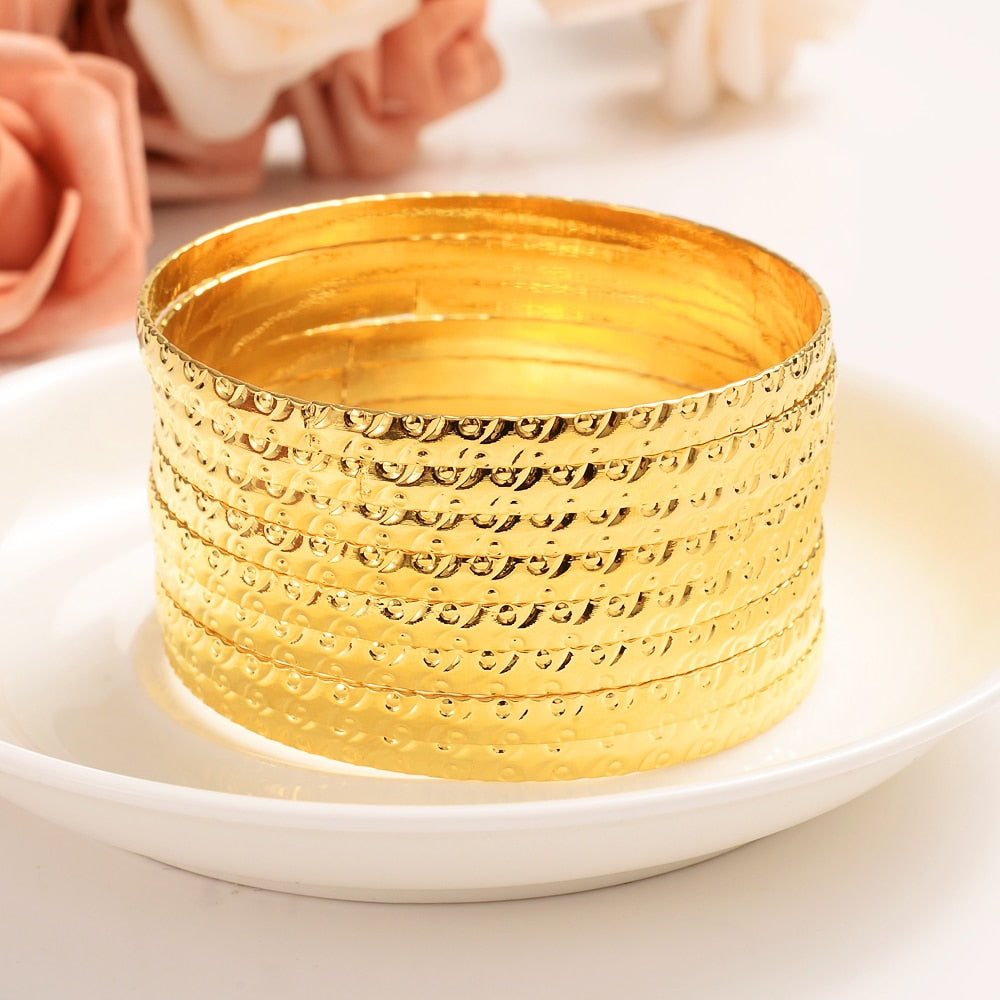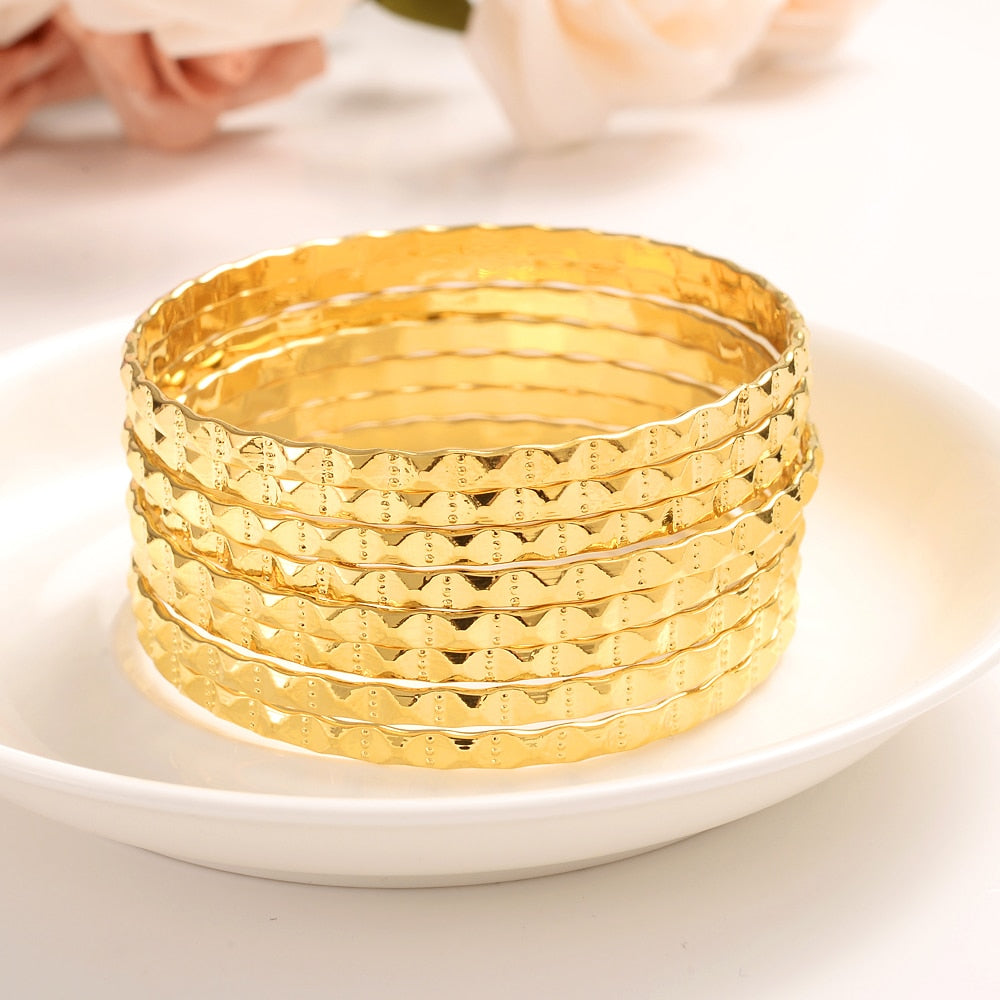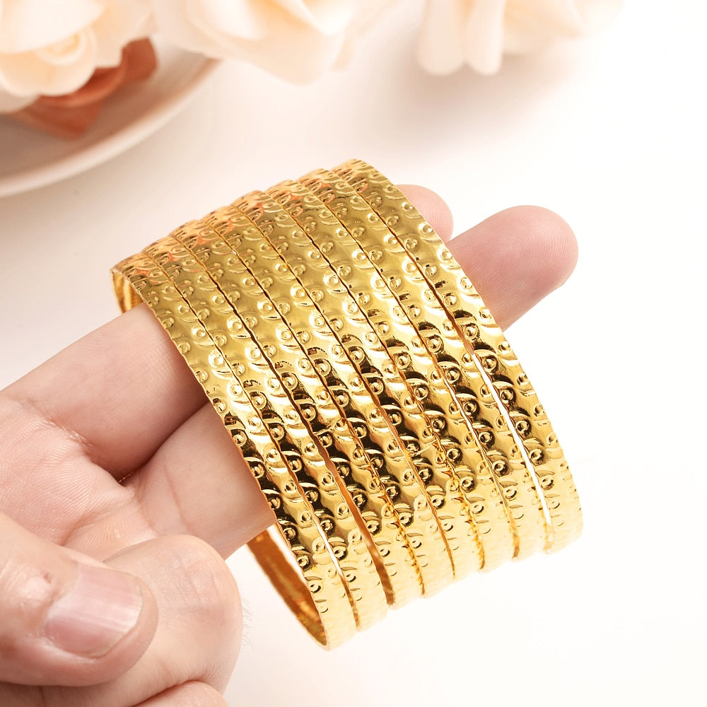 Afraic Jewelry-24k 8pcs Luxury 24k Gold Color Ethiopian Jewelry Bangles For Women Dubai Ramadan Bangles&Bracelet African/Arab Weeding jewelry Gift
