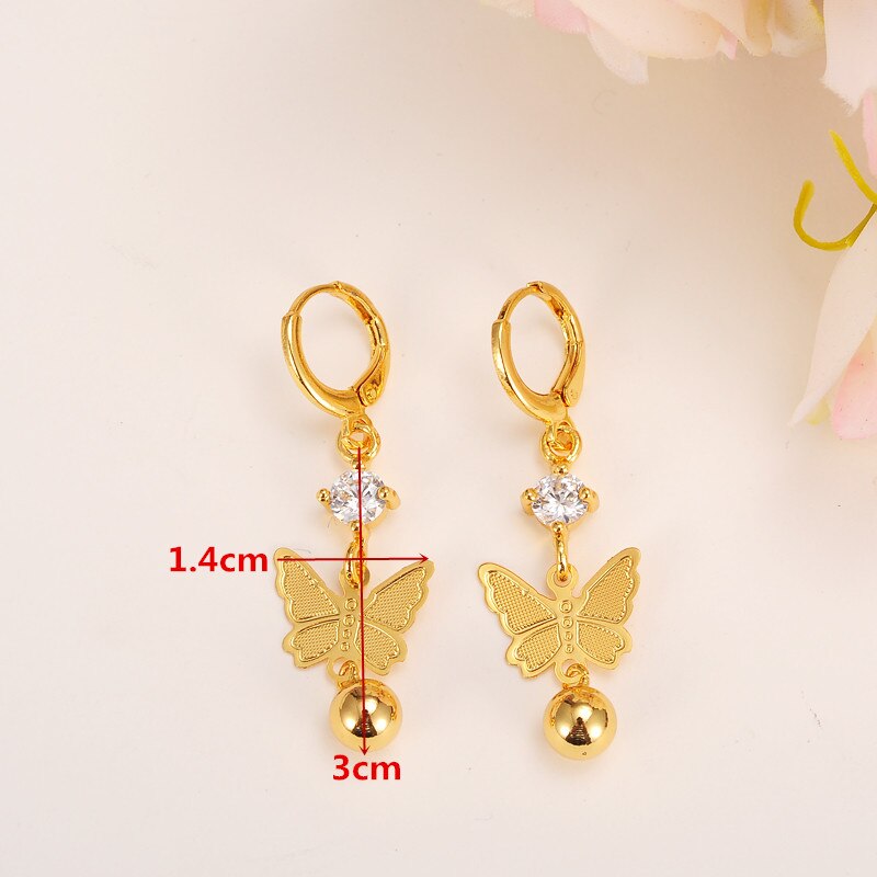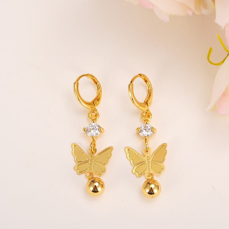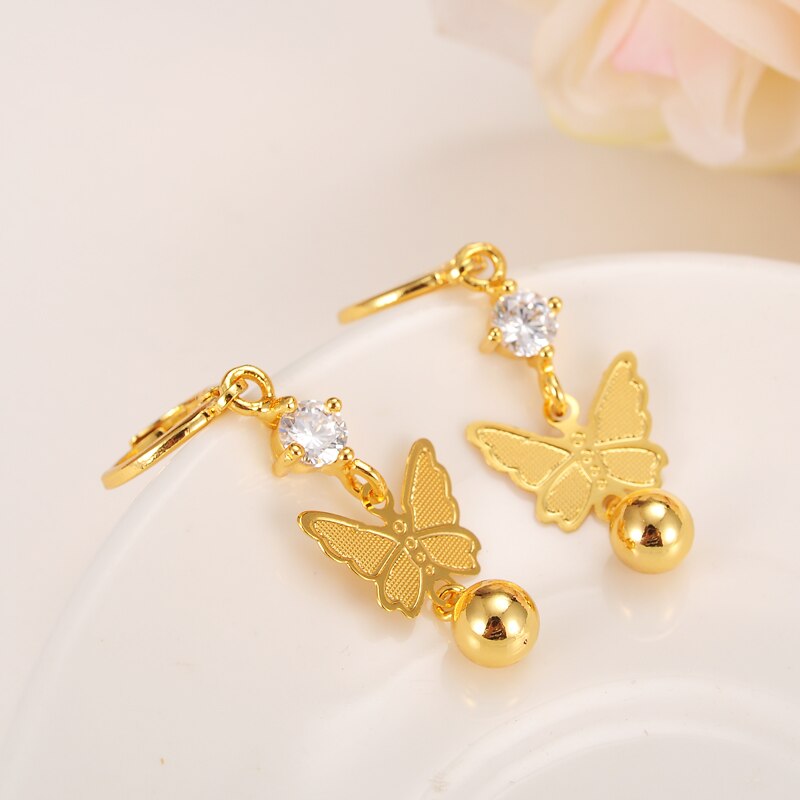 Afraic Jewelry-24k Africa wedding jewelry bridal Earrings for Women Gold Earrings Ethiopian Fashion Jewelry crystal butterfly charm girlsjewelry