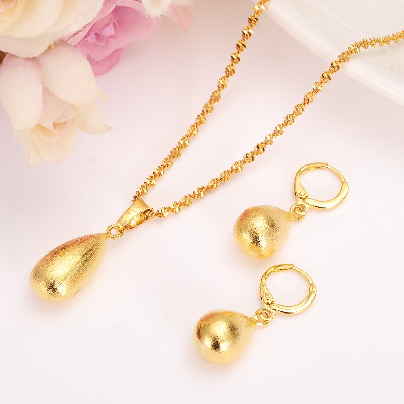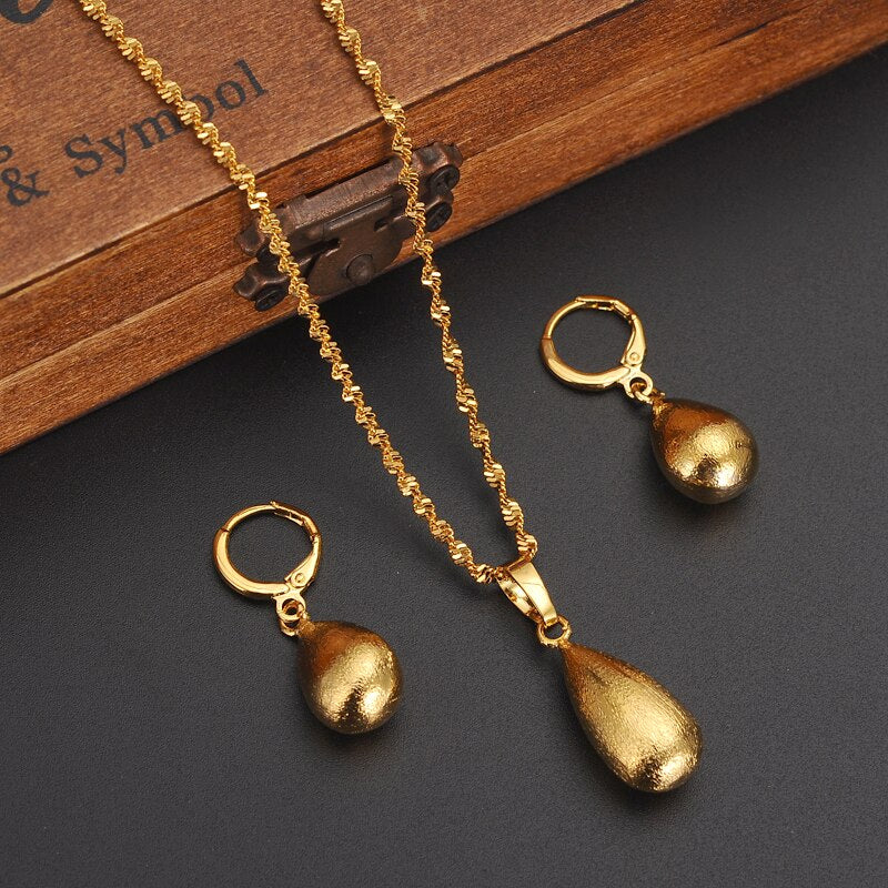 Afraic Jewelry-24K african geometric drophjewelry set chain women Nigerian wedding gold multi layer necklace pendantearring Indian jewelry sets