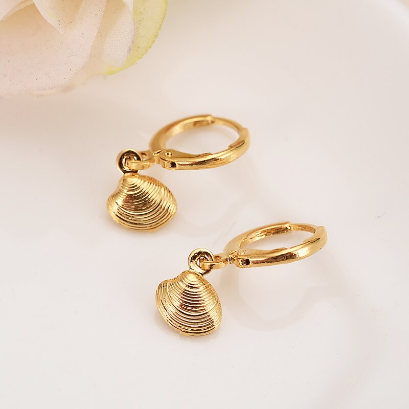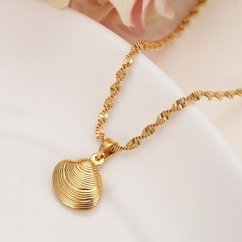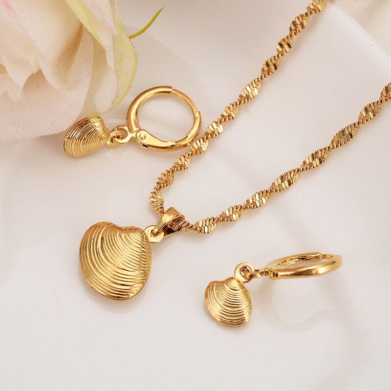Afraic Jewelry-24K african gold pendant Necklace Earring Set Women Party Gift cute shell charms women girls Fine kids Jewelry gift