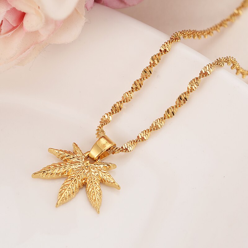 Afraic Jewelry-24k african gold pendant Necklace Women Party Gift Cannabiss Weed Marijuan Leaf charms women girls Fine Jewelry gift