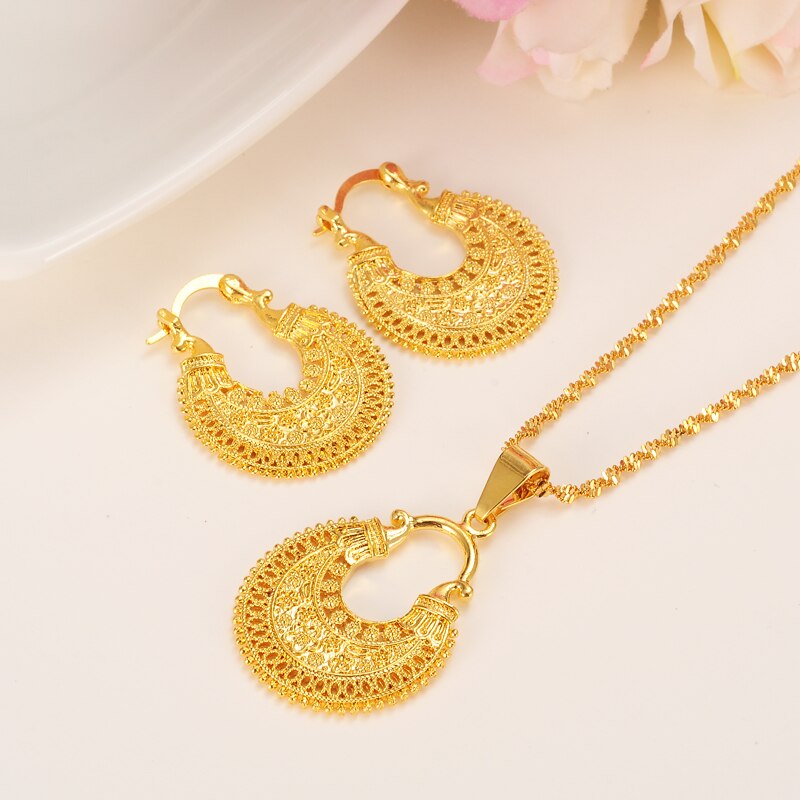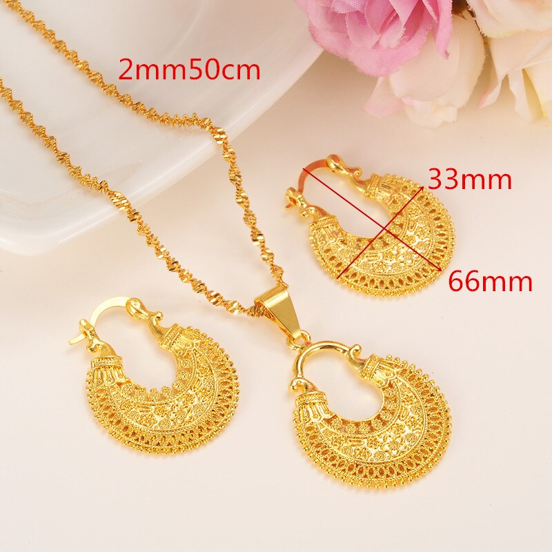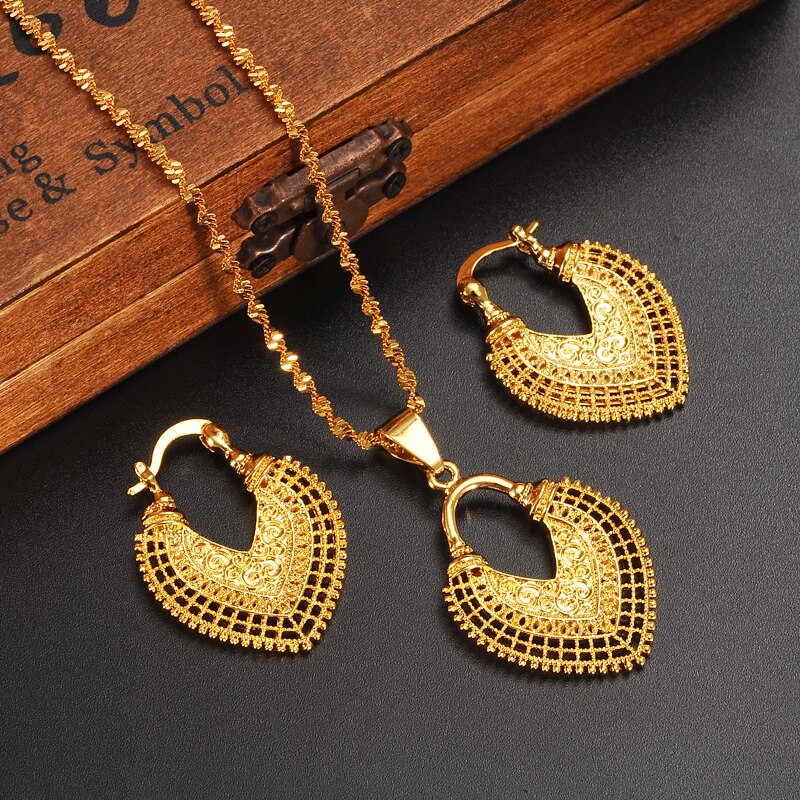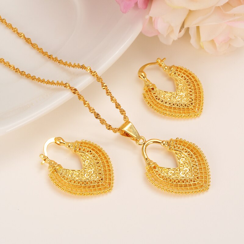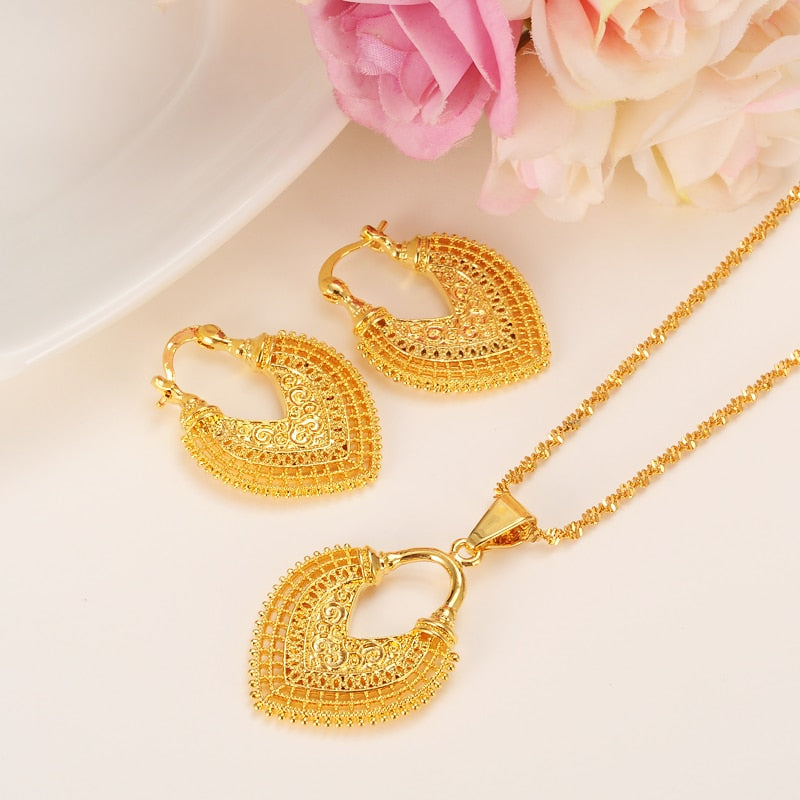 Afraic Jewelry-24K african water drop jewelry set chain women Nigerian wedding gold multi layer necklace pendantearring Indian jewelry sets