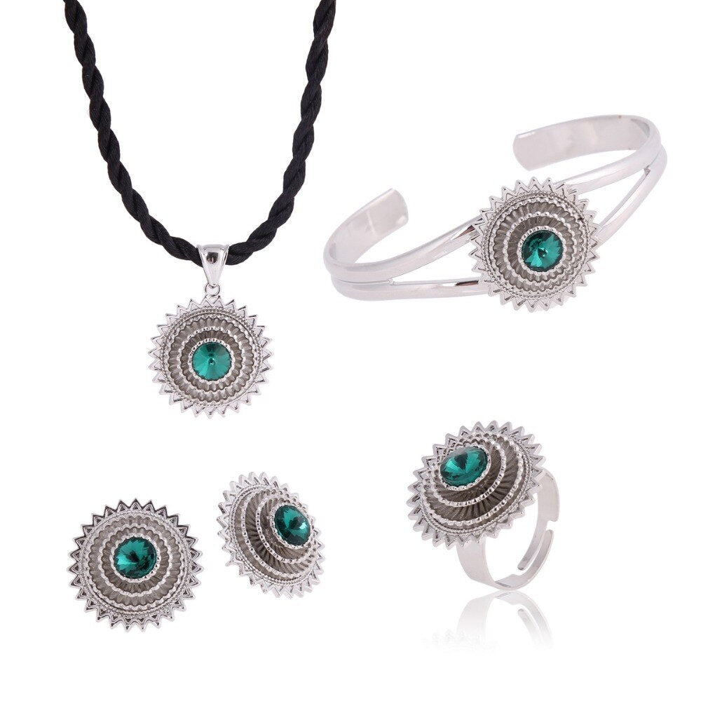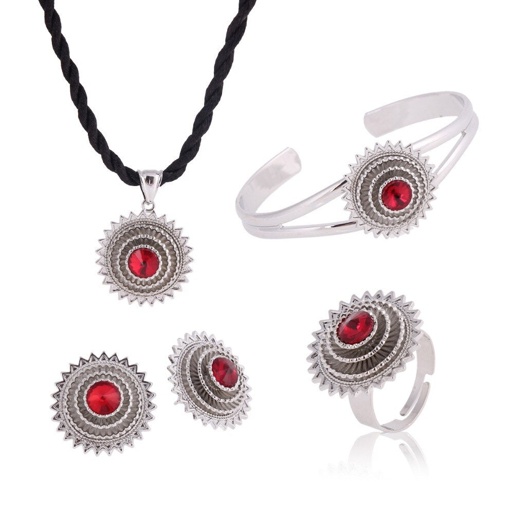 Afraic Jewelry-24K Bangrui Silver Ethiopian Jewelry African Women Bridal Jewelry Sets Ethiopia Wedding Pendant Earrings Ring Bangle