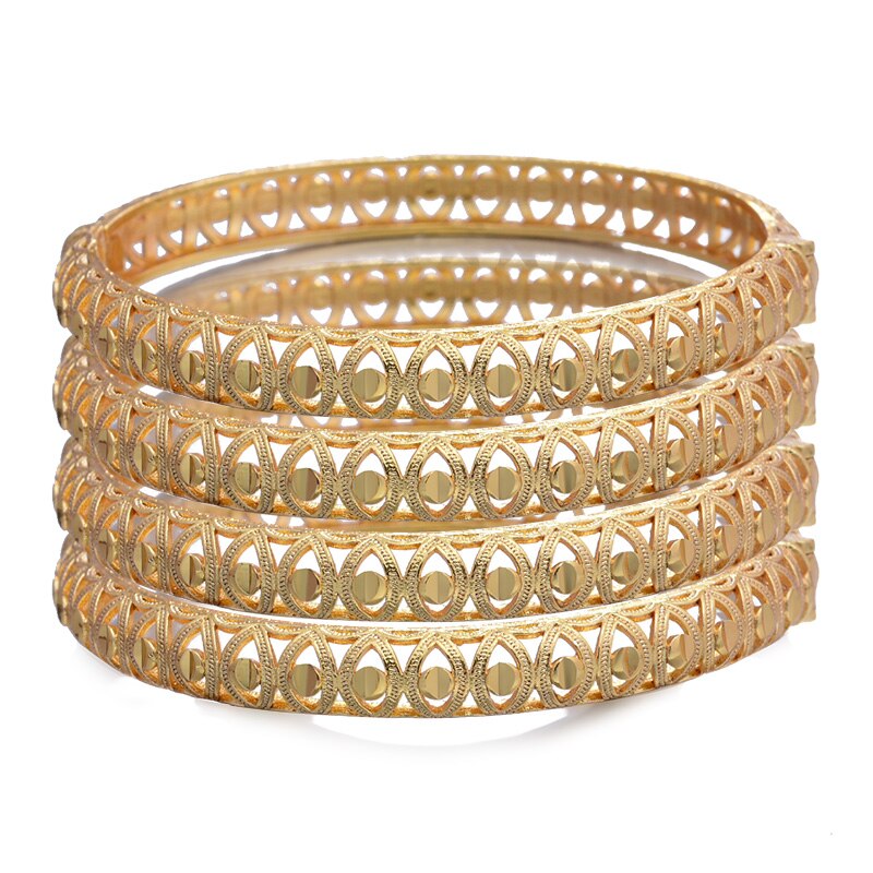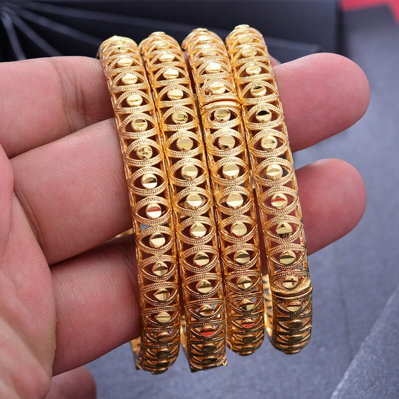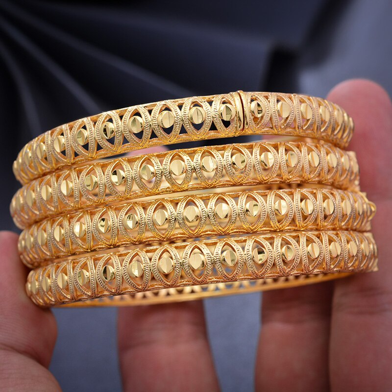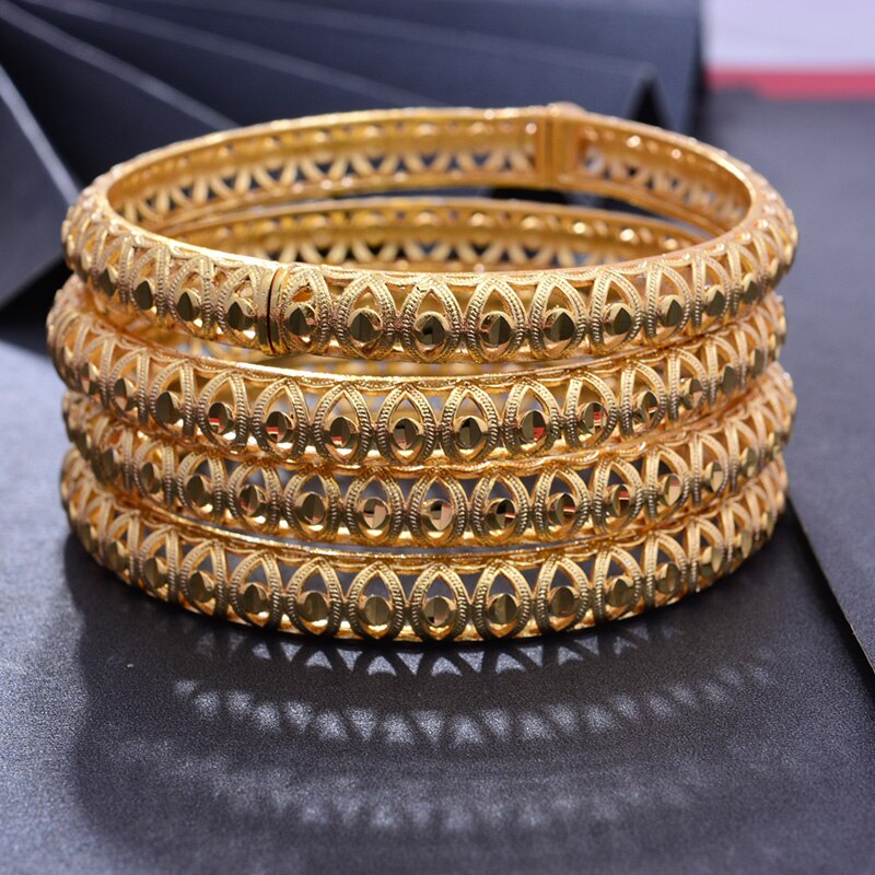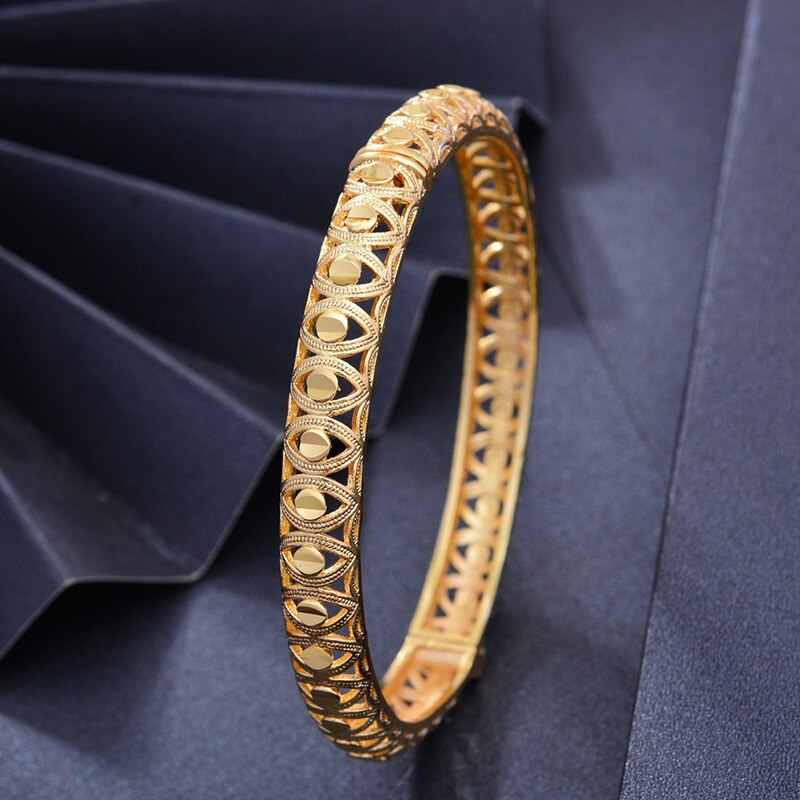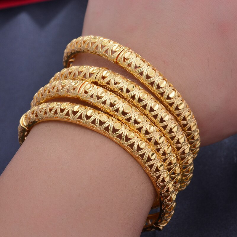 Afraic Jewelry- 24K 1pcs Copper Gold color Dubai Bangles For Men/Women Flower Jewelry 6cm wide Wedding bracelet gift