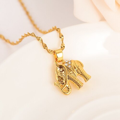 Afraic Jewelry-24k crystal elephant Necklace Pendant Women/Men Lovers's Jewelry Valentines GiftGold Color Romantic Fancy DIY charms Bijoux gift