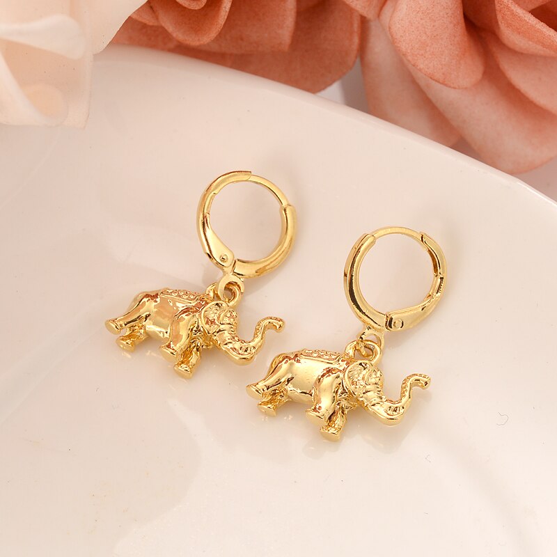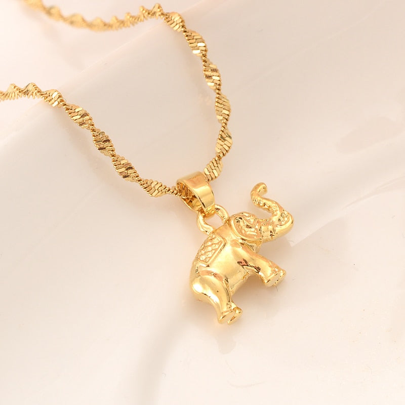Afraic Jewelry-24k cute African EthiopiaNecklace Jewelry sets GoldOrigami Elephant Necklace earrins Lucky Pendant For Animal lovers women kidgift