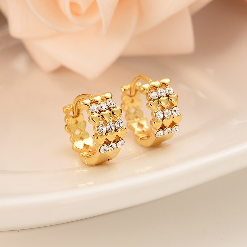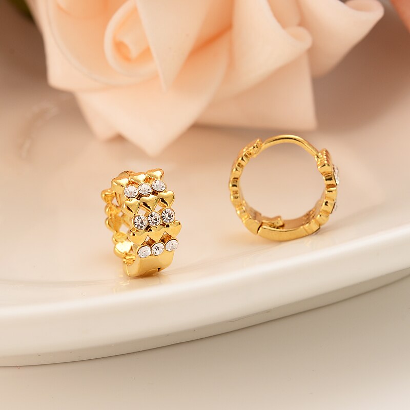 Afraic Jewelry-24k cz diamond Girls Round Circles Huggies Hoop Earrings Gold Jewellery For girls Children Aros women jewelry african best gift