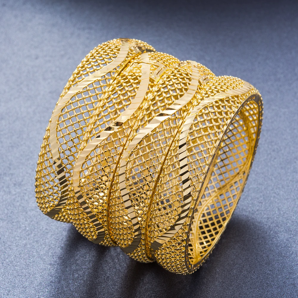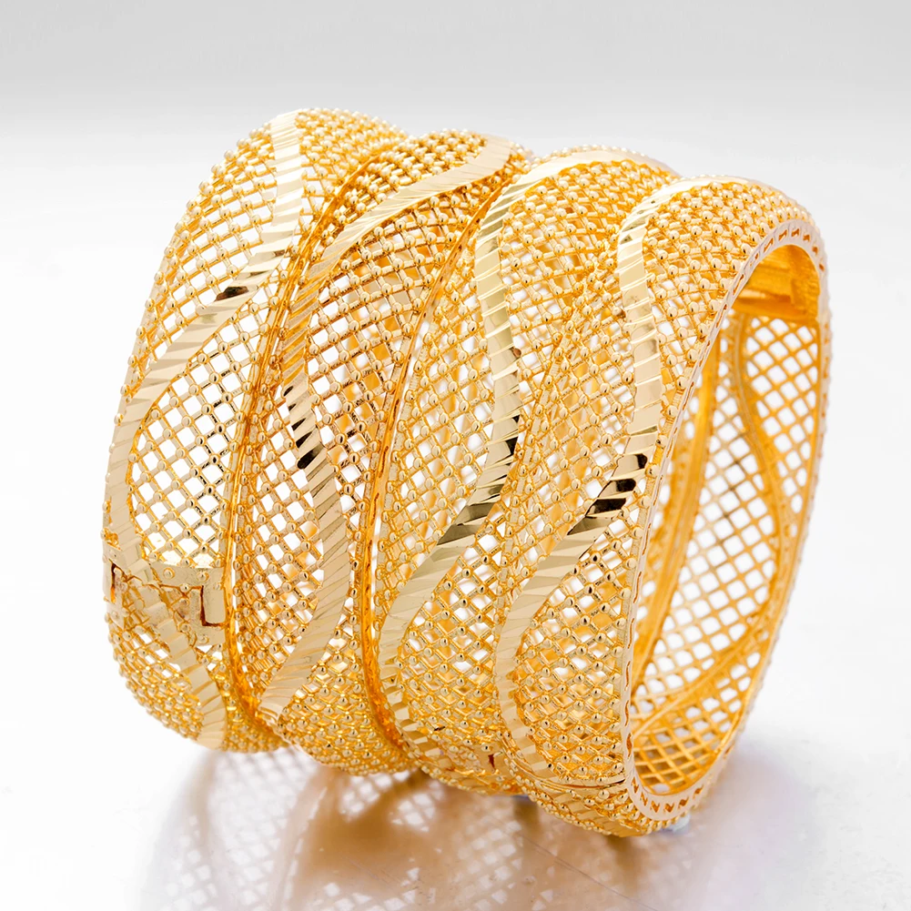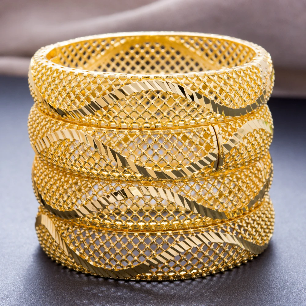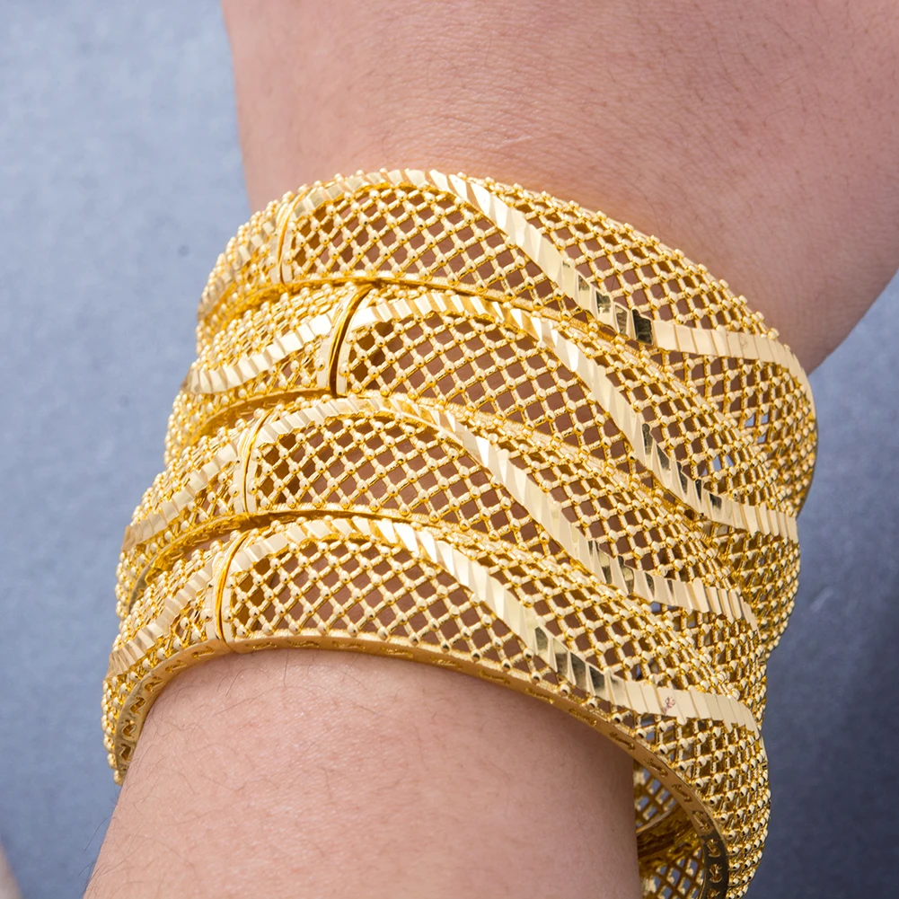 24k Dubai Bangles 4Pcs Gold Color Bangles For women African bridal Bangles Bracelets