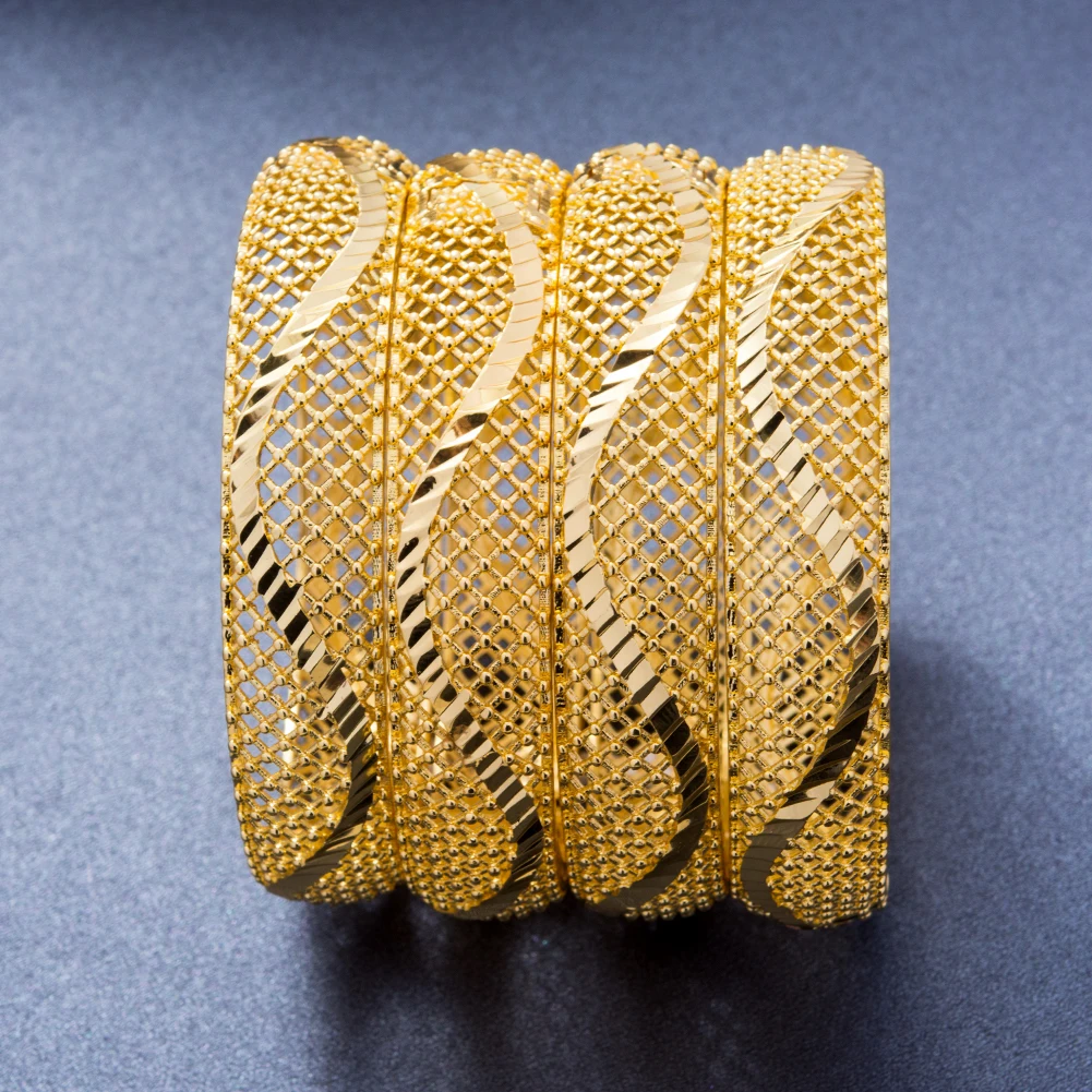 Afraic Jewelry- 24k Dubai Bangles 4Pcs Gold Color Bangles For women African bridal Bangles Bracelets wedding gifts wave Bangles jewellery