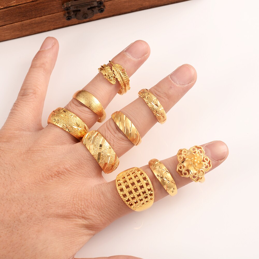 Afraic Jewelry-24k Ethiopia Dubai Gold Color Arab adjusable Rings Resizable for Women/Adolescent Wedding Jewelry African /Halloween Gift