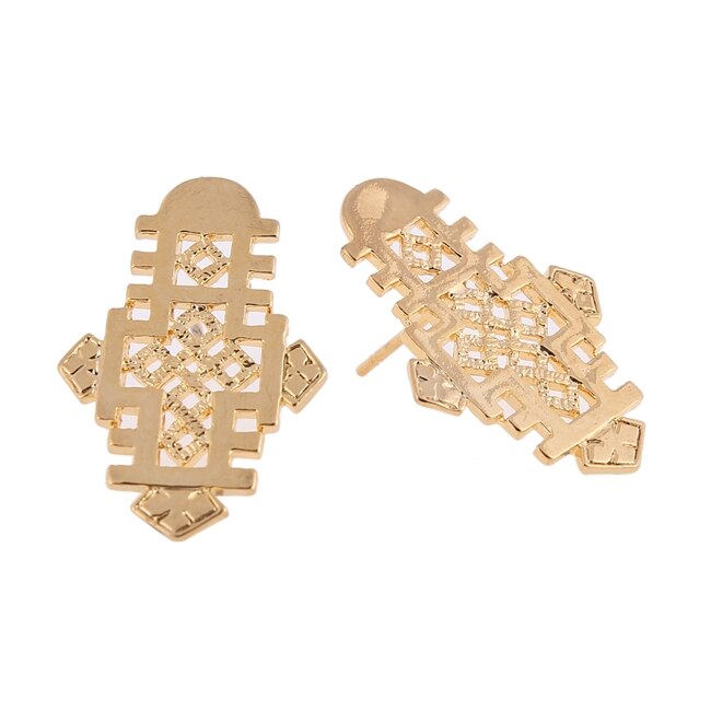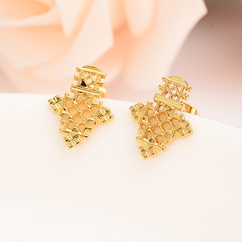 Afraic Jewelry-24k Ethiopian Cross Coptic Earrings for Women Girl Gold silver stud earring African Earring Jewelry Eritrea Items gift