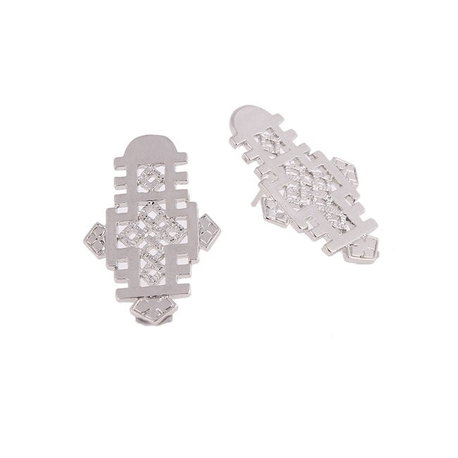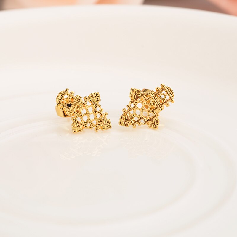 24k Ethiopian Cross Coptic Earrings for Women Girl Gold silver stud earring
