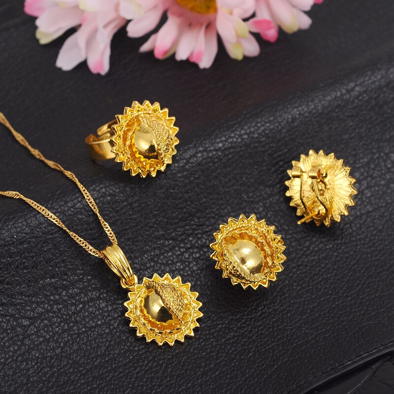 Ethiopian Gold Sets Jewelry Earrings Pendant Ring Eritrean Traditional African bridal Habesha Women Party African wedding gift