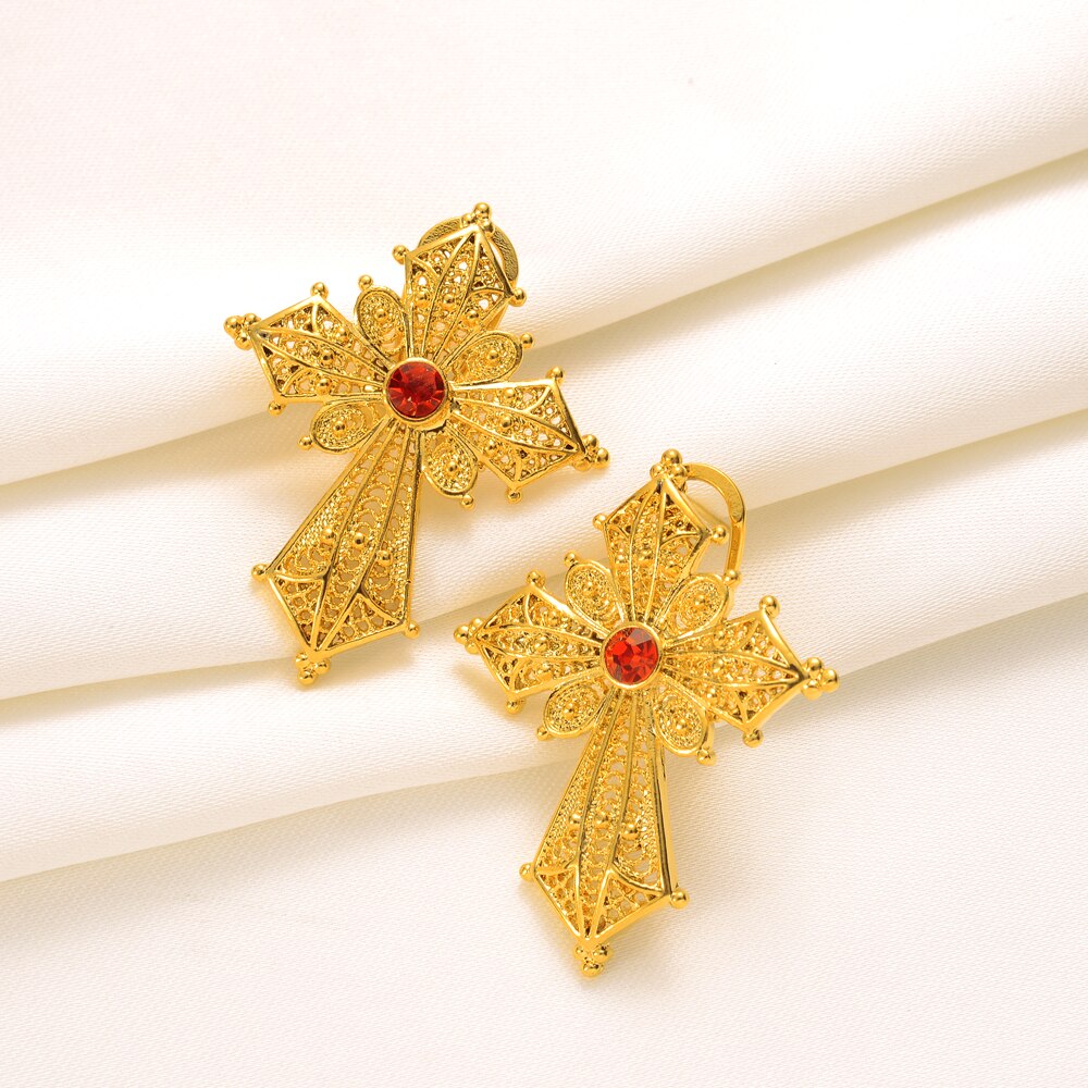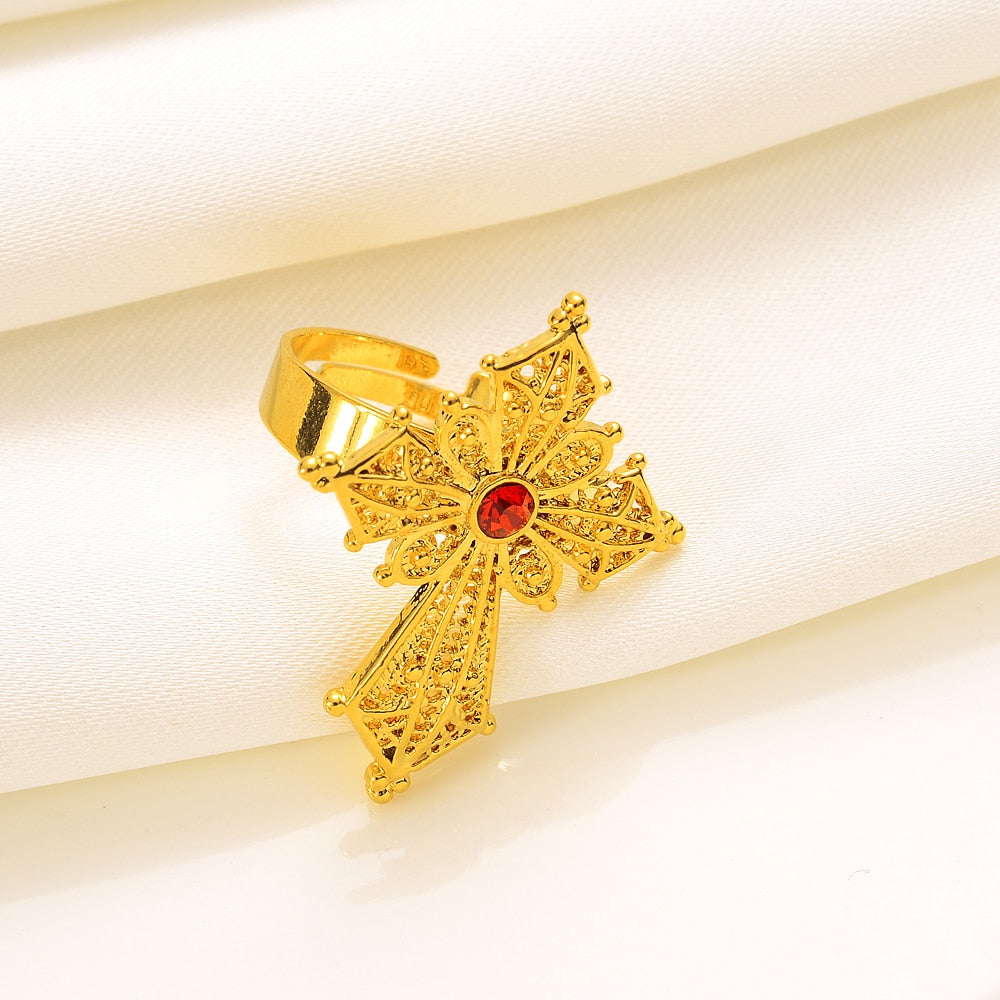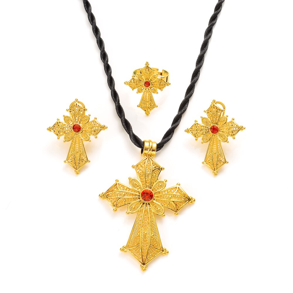 24k Ethiopian Traditiona Cross Jewelry Set Necklace Earrings Ring Ethiopia Gold Eritrea Sets