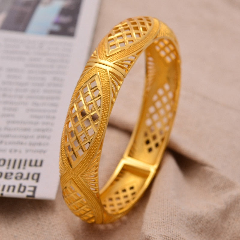 Afraic Jewelry- 24K Ethnic (1pcs/Lot) Nation Dubai African Gold Color Bride Bangles For Women Arab Wedding Jewelry Middle East Good Gifts