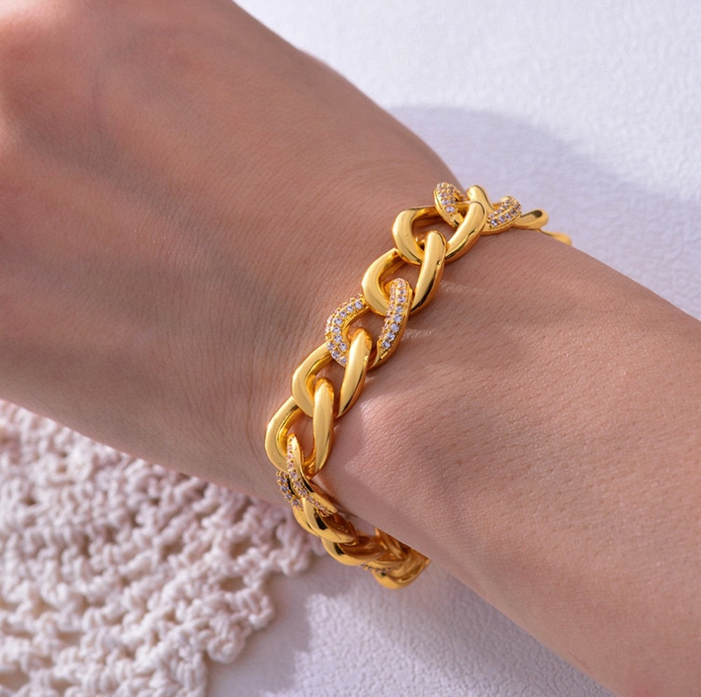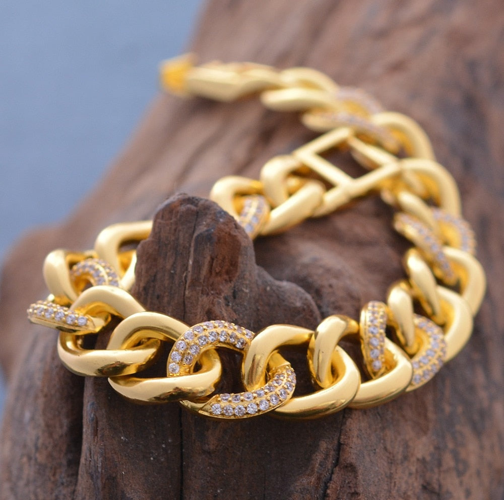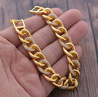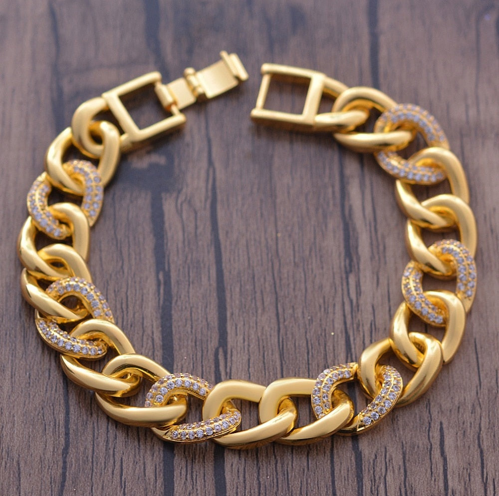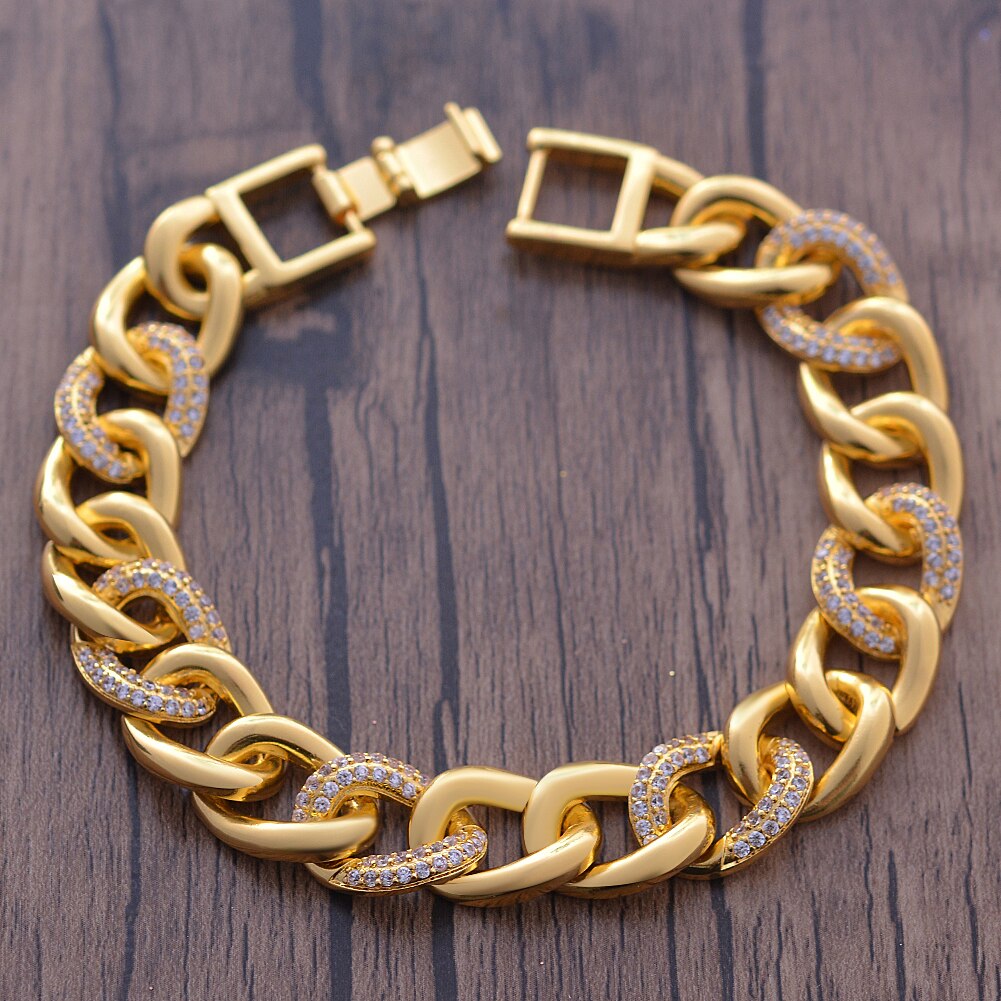Afraic Jewelry- Brand Fashion Wedding Bracelet Charm AAA Cubic White Zircon Gold Color Africa Jewelry Bracelets&Bangles For Woman Man