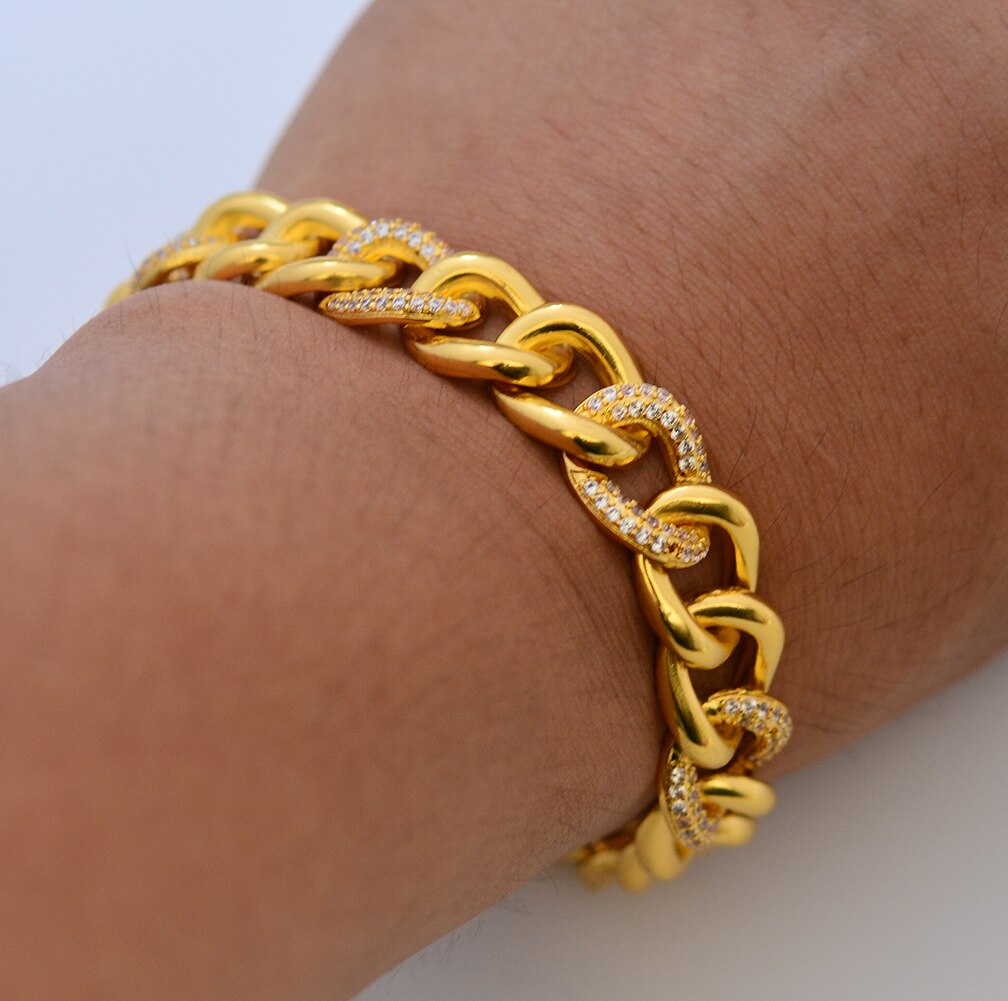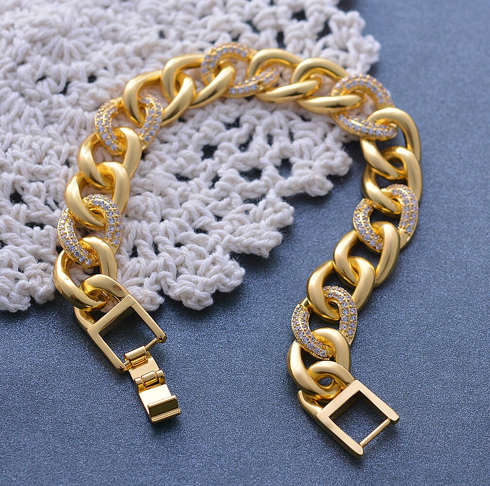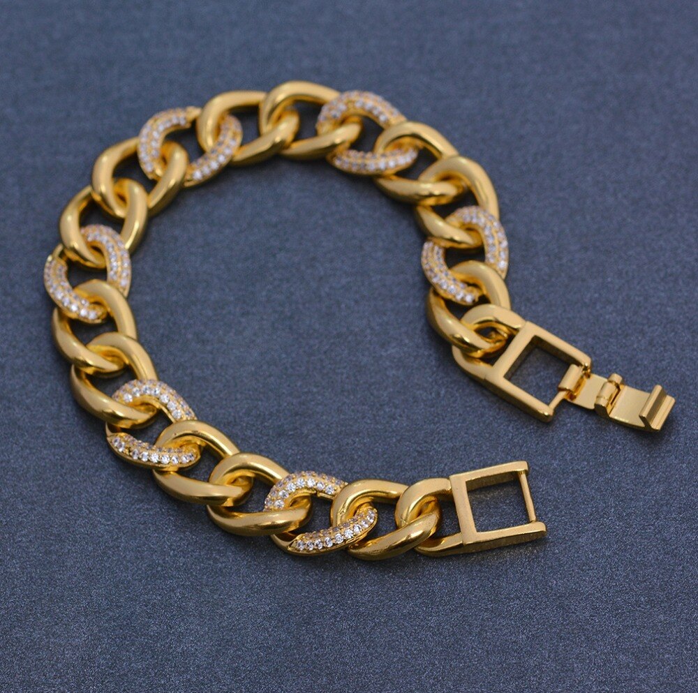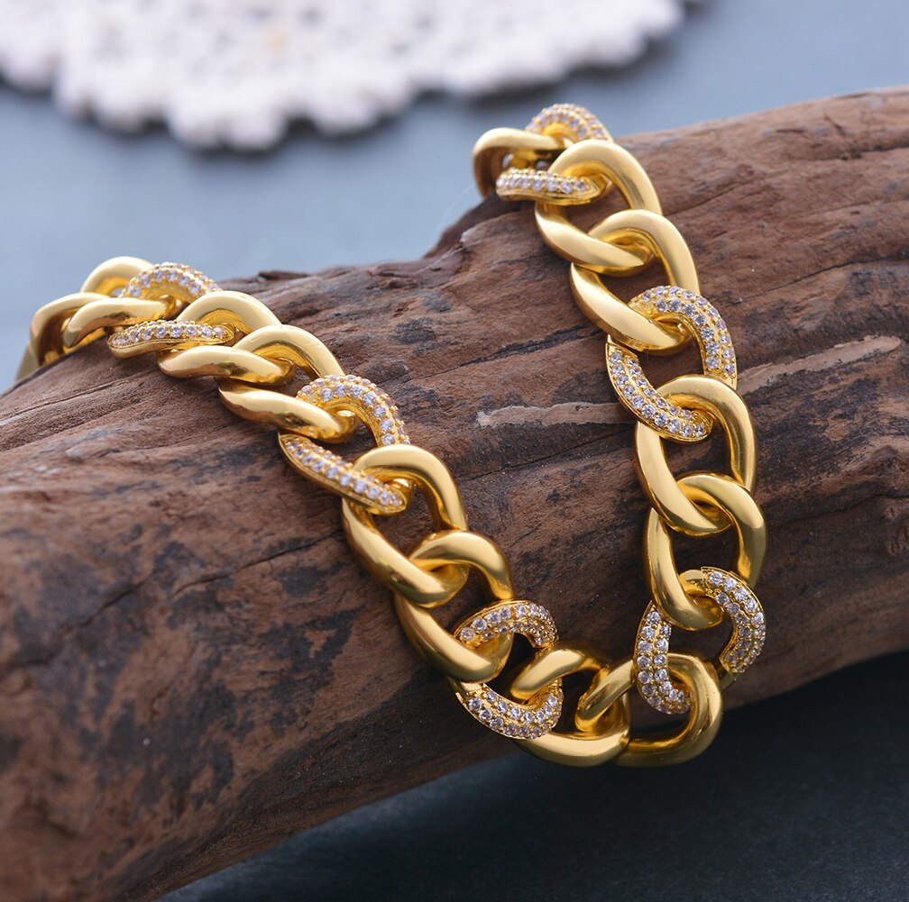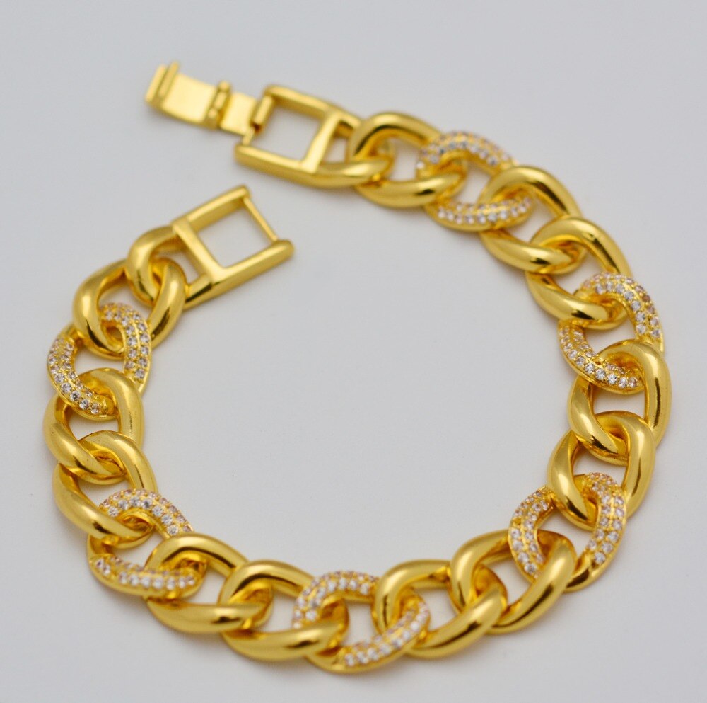 Afraic Jewelry- 24K Brand Fashion Wedding Bracelets Charm AAA Cubic White Zircon Gold Color Africa Jewelry Bracelets&Bangles For Woman Man