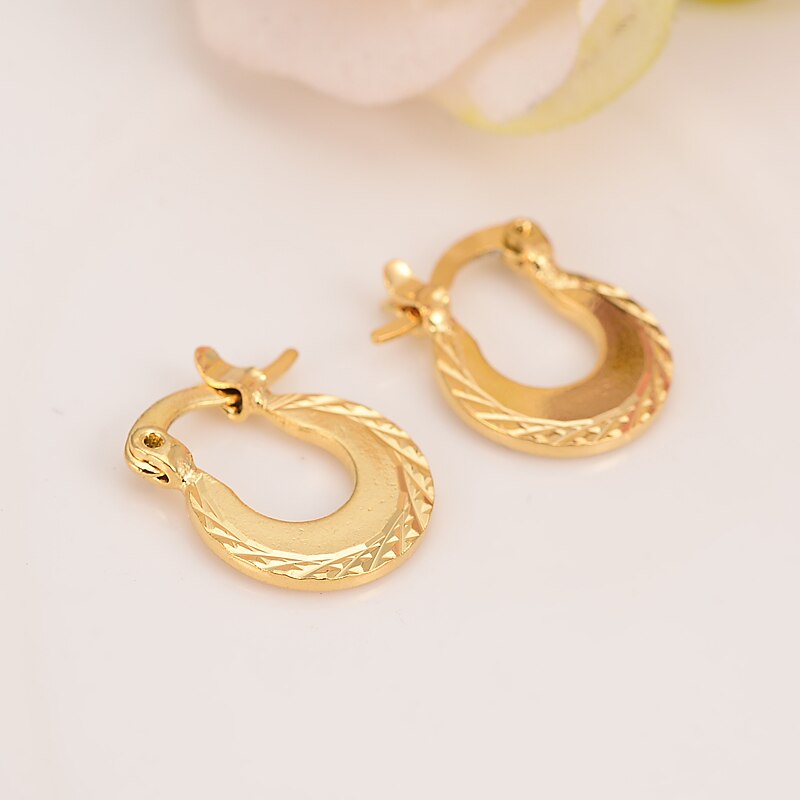 Afraic Jewelry-24K Girls Small Round Circles Huggies Hoop Earrings Gold Jewellery For Kids Children Aros women men jewelry african best gift
