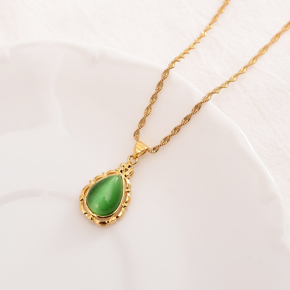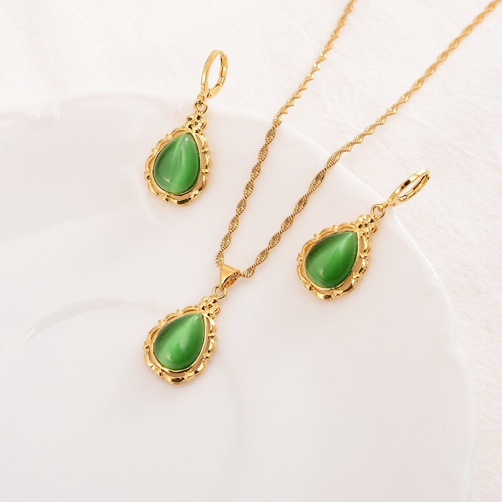 24K Gold African Dubai indian Waterdrop pendant necklace earrings Bridal jewelry sets for Women