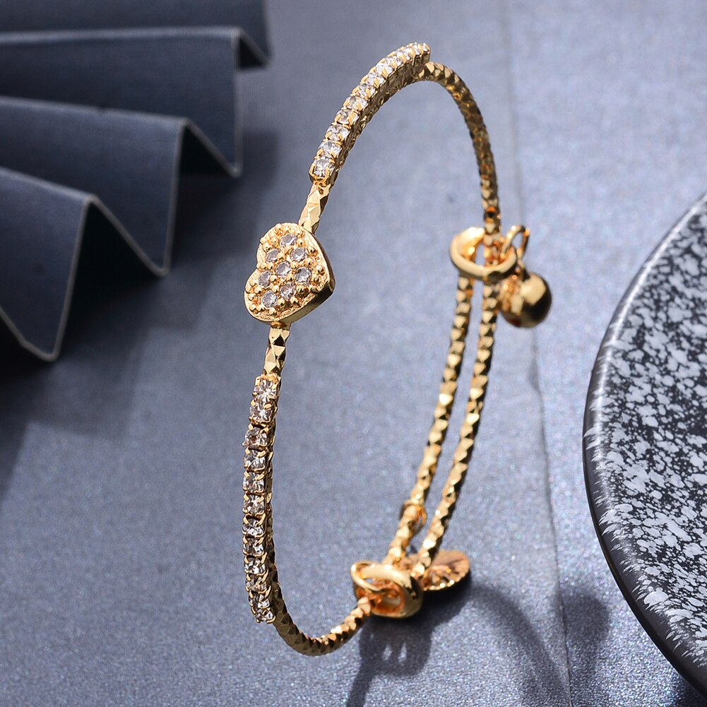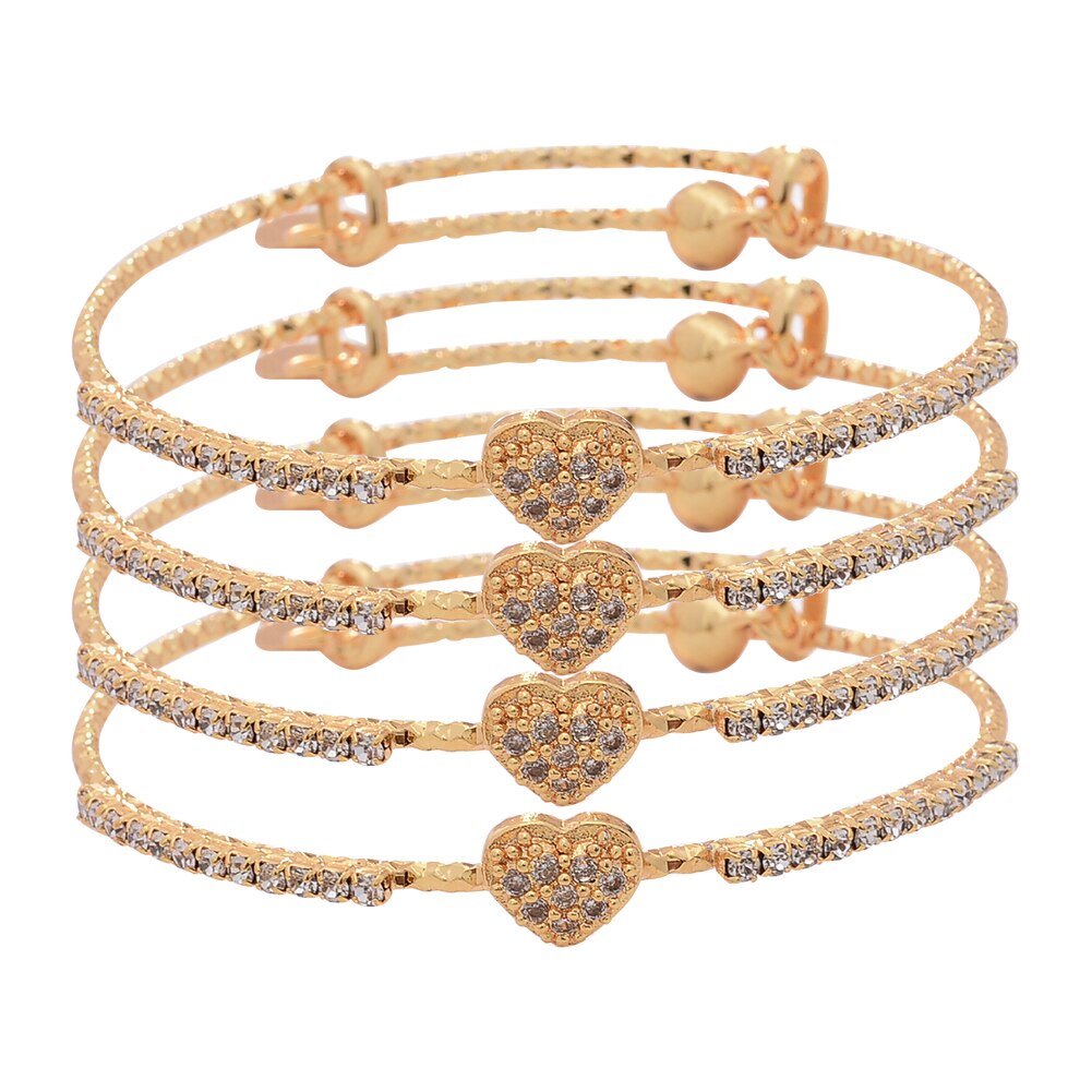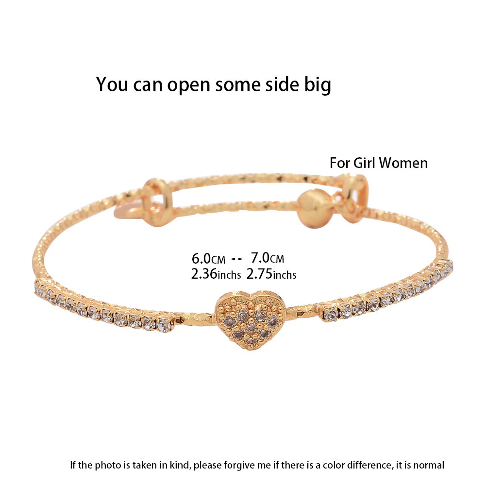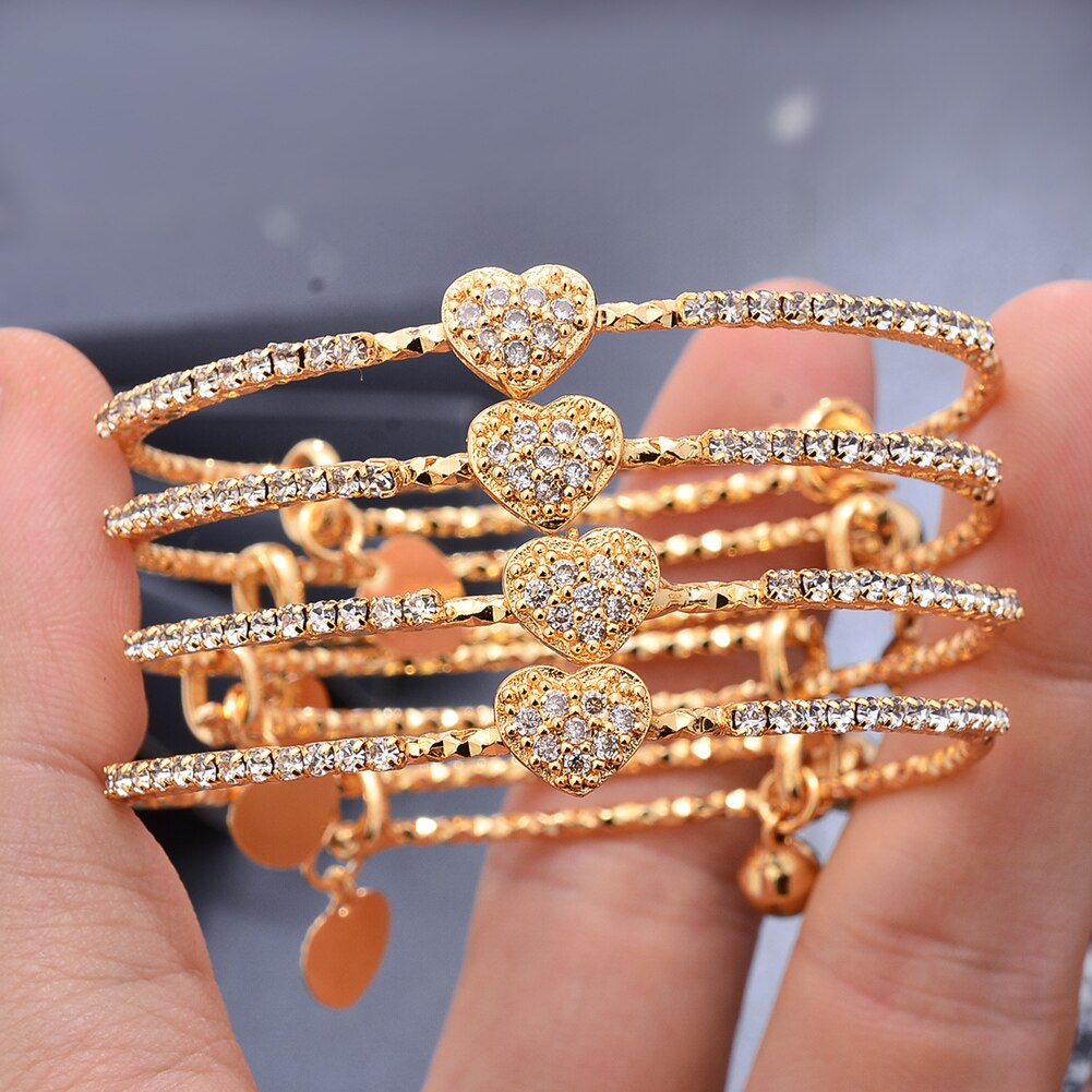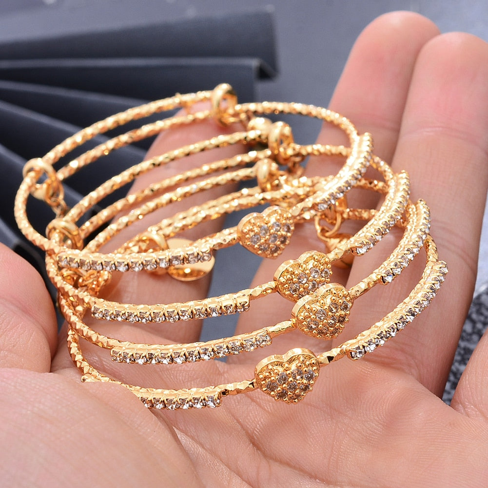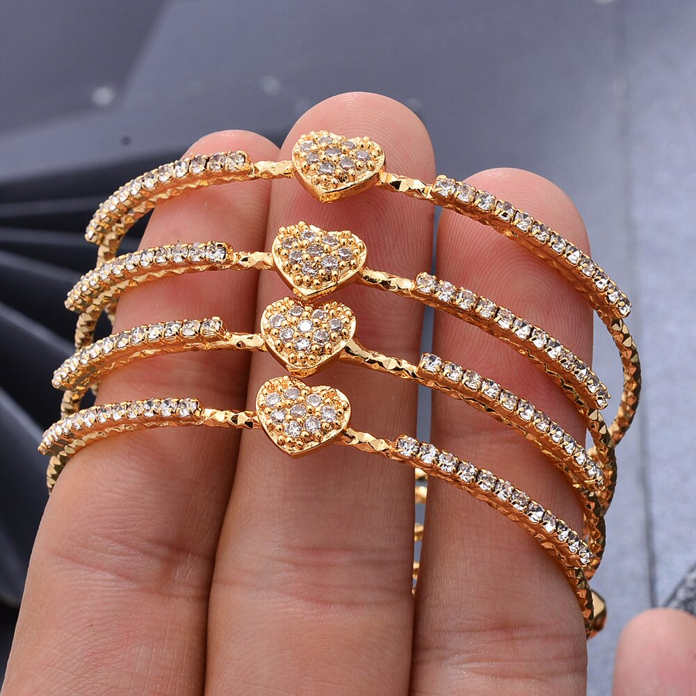 Afraic Jewelry- 24K Gold Bangles Bracelet Women Girls France Rhinestone Bracelets Indian African jewelry bride wedding Heart shaped party Gifts