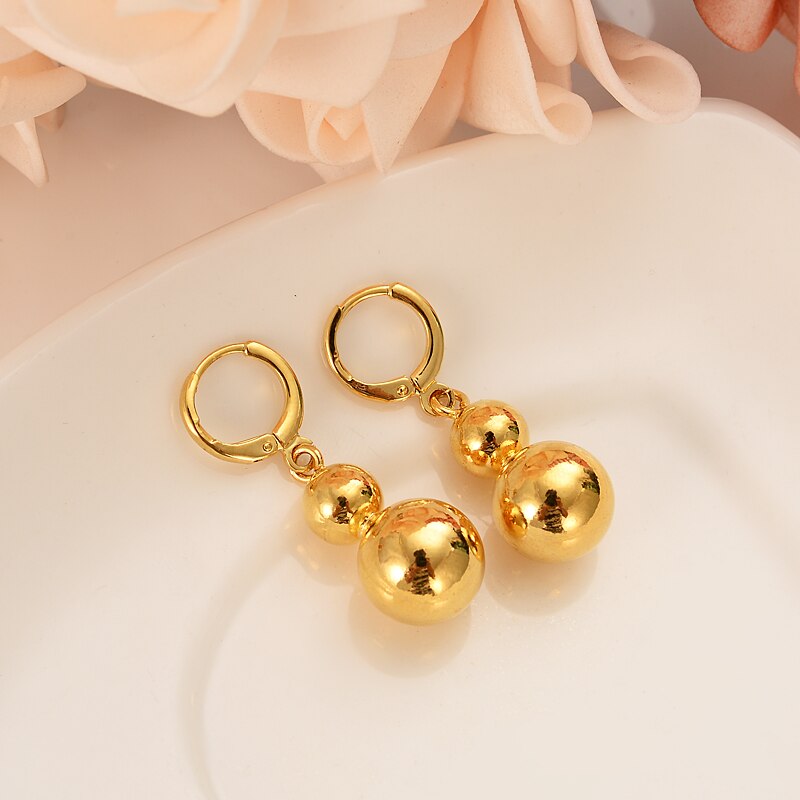 Afraic Jewelry-24k Gold Color Ball drop Earrings for Women Girls kids Jewelry Bead Round Ethiopian Africa Arabia Middle East Bijoux charms Gift