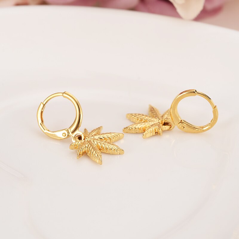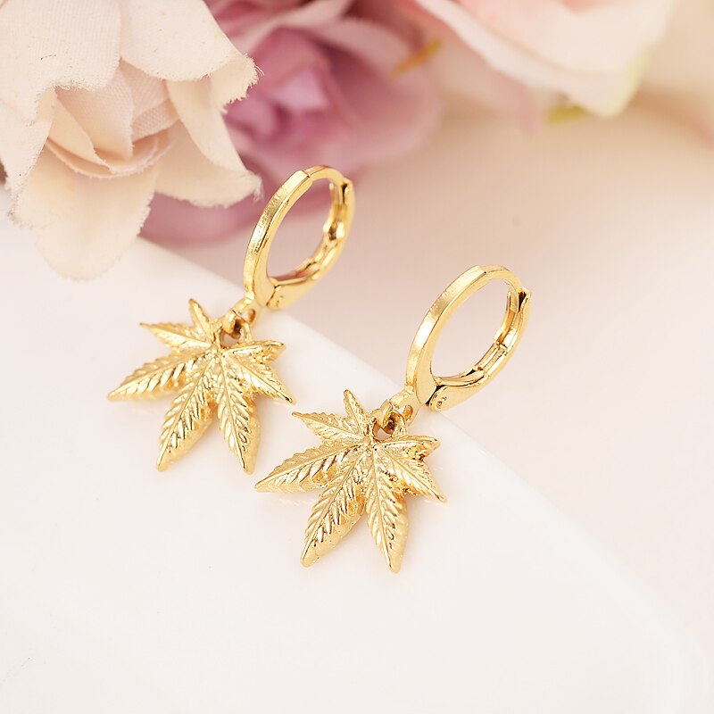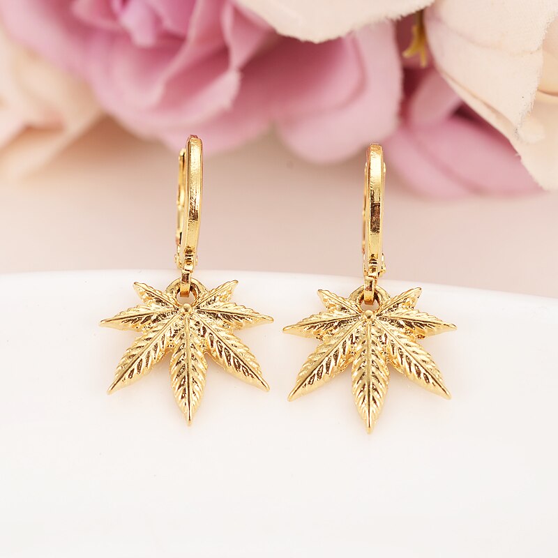 Afraic Jewelry-24k gold color drop earring Africa Women Party Gift Cannabiss Weed Marijuan Leaf charms women girls party Jewelry gift diy charms