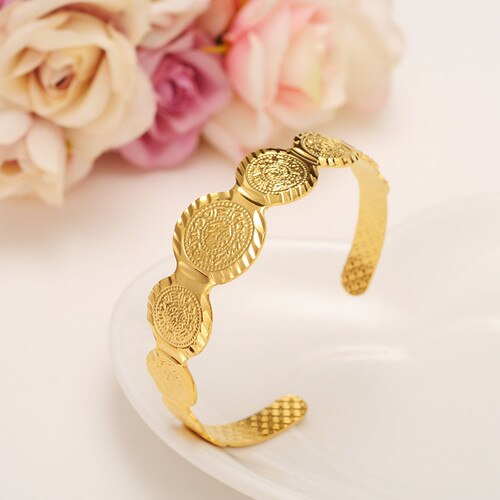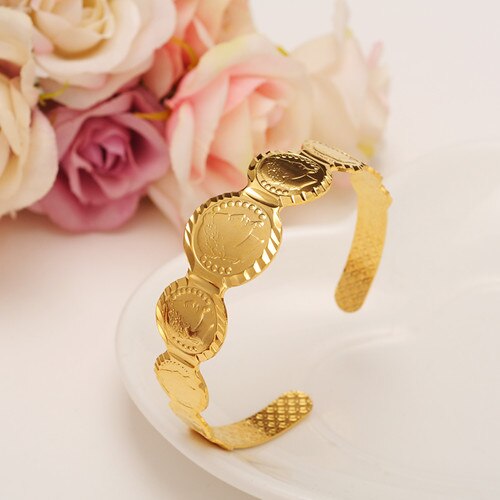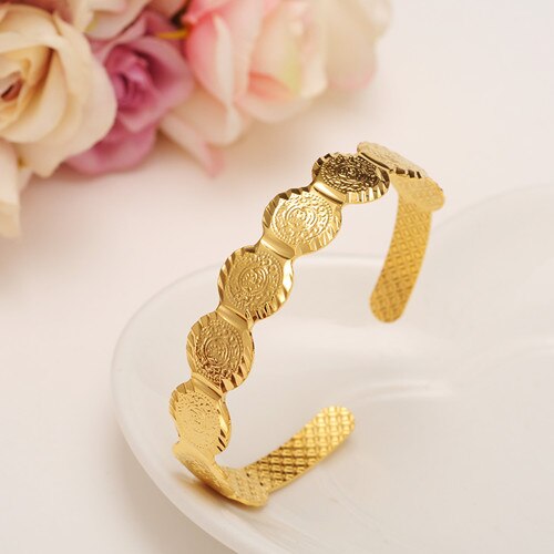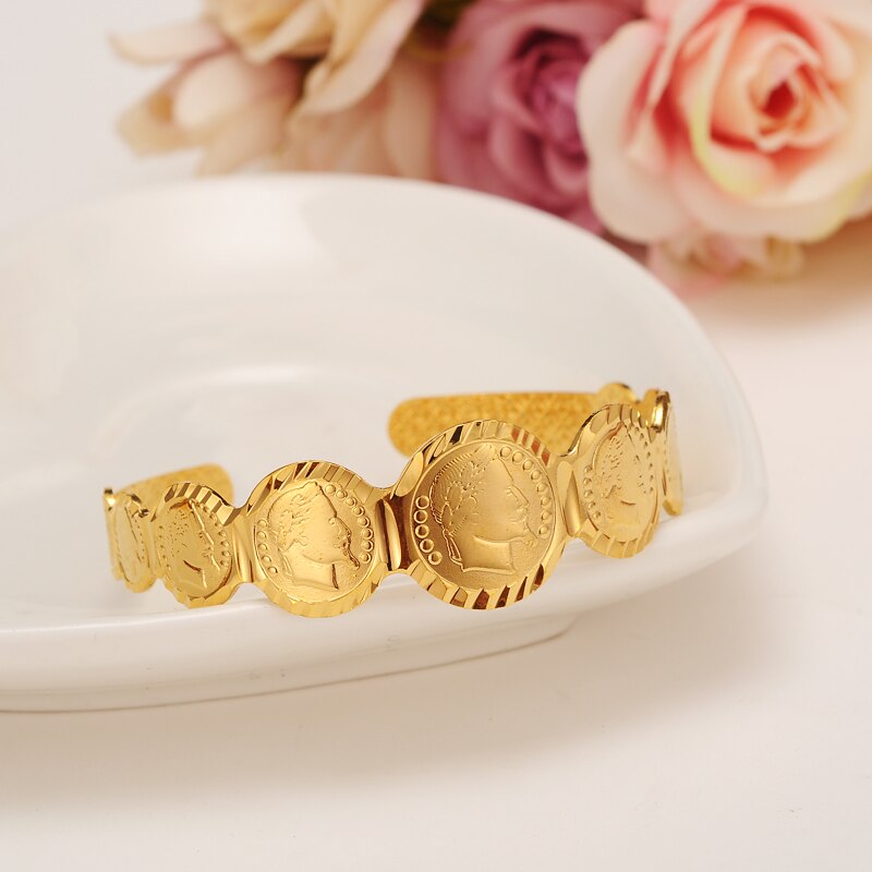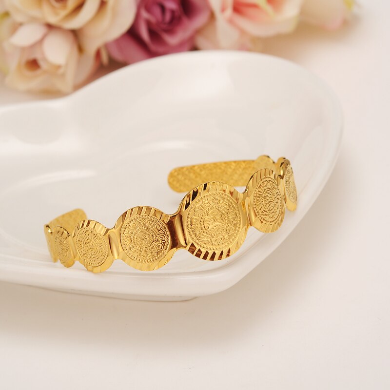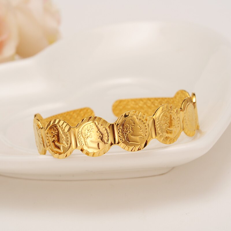 Afraic Jewelry-24K Gold Dubai India Stamp Girls Coin Bangle Bracelet Women Girl Bracelet African Children Bairn Jewelry Men Mideast Boy Arab Gift