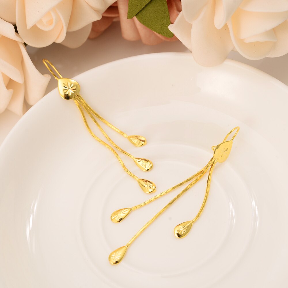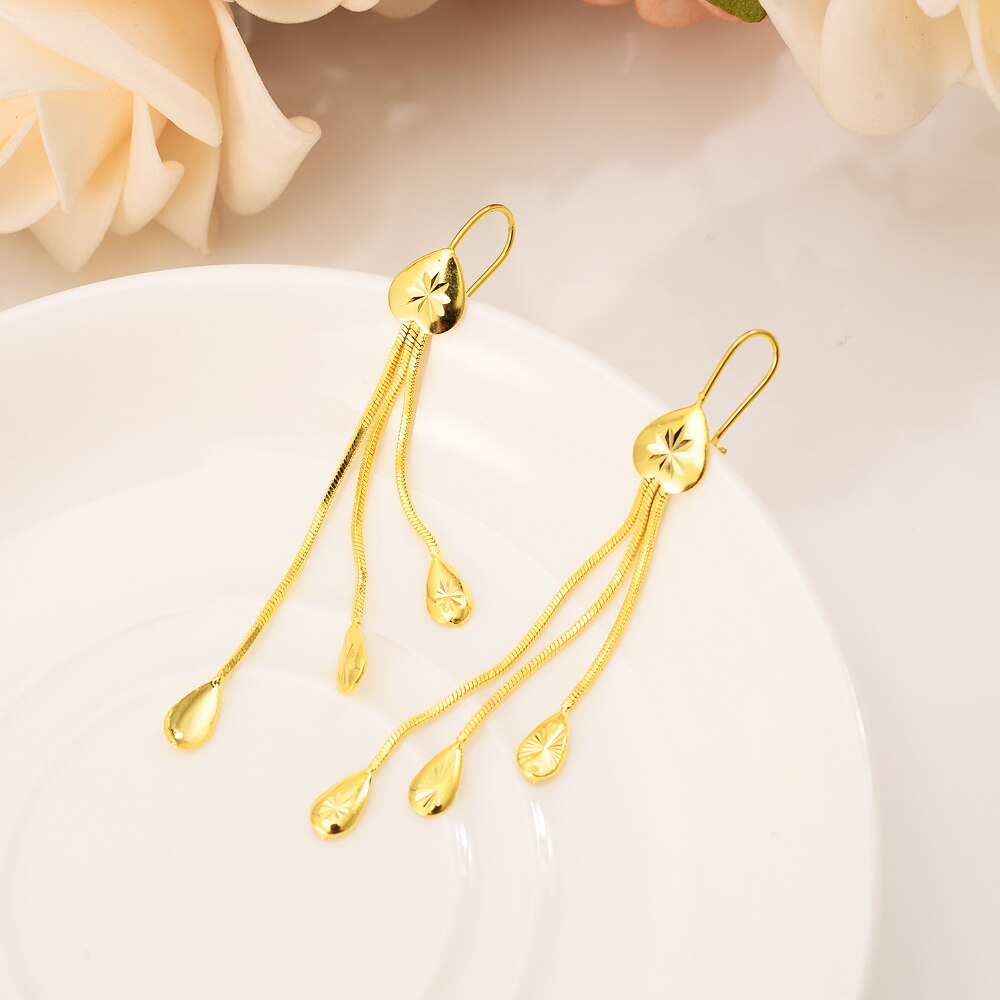 Afraic Jewelry-24k gold Earrings geometry Long Tassel Chain Stud Earrings boucle d'oreille For Women wedding party birthday Christmas gifts